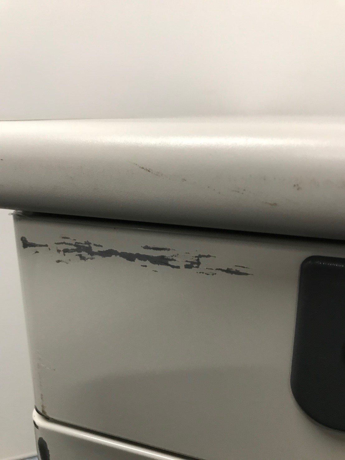 - 多数不具合ありその脇机・ワゴンの本来の効用を果たすための機能以外の多数が使用不可な状態。(例、引出が開閉しづらい、 キャスターロック機能使用不可、ラッチ不良 等がある。)