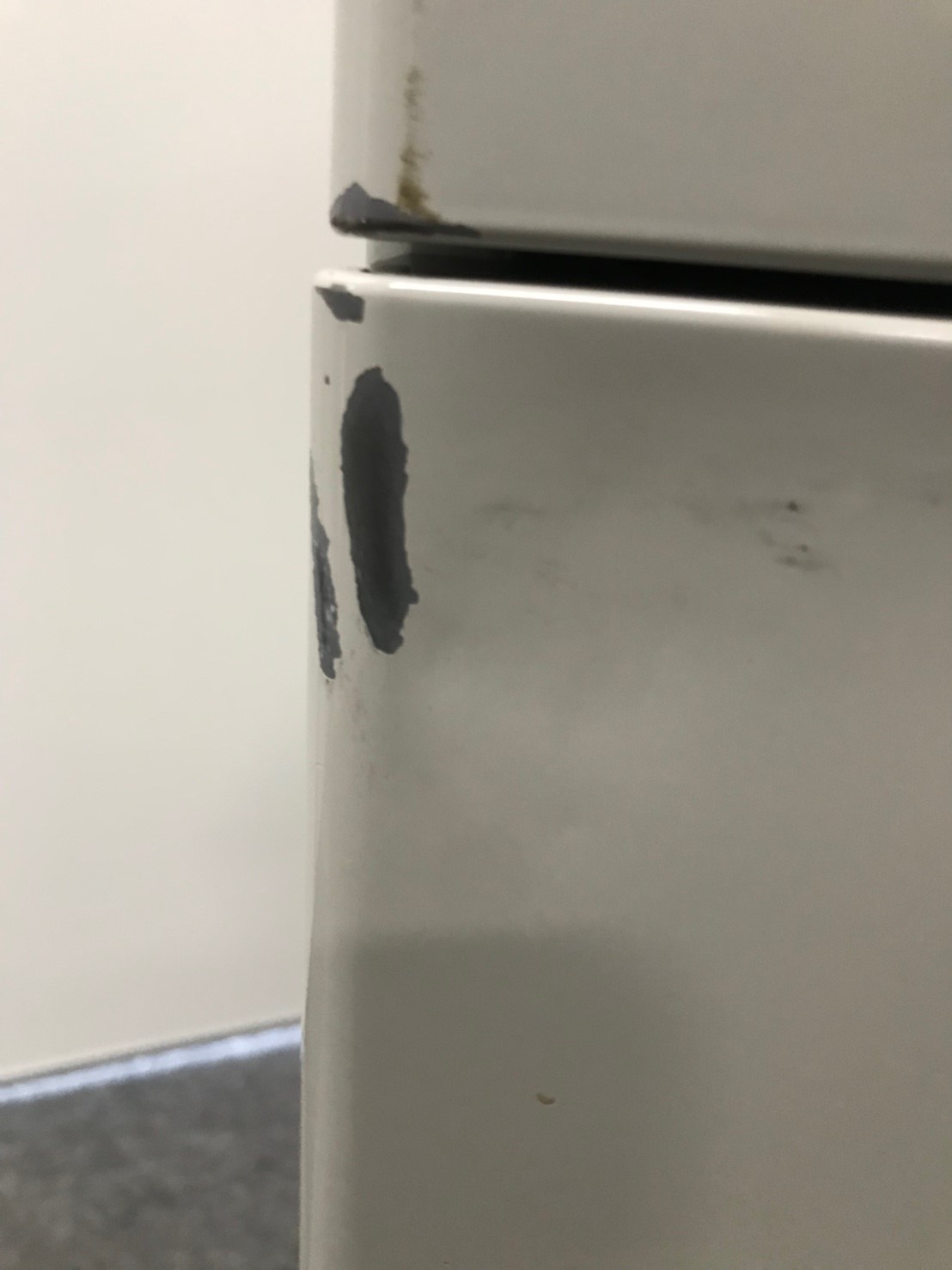 - 目立つ箇所あり傷・凹みが多数、深い傷・凹みが一部ある。(例、天板、正面、背後、サイド部分にある。)
