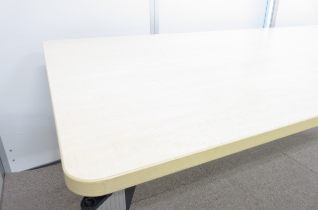 【会議室だけでなく休憩室でも!6~8名様対応・大型テーブル】■イトーキ(ITOKI) DDDシリーズ ミーティングテーブル 会議テーブル 幅2400×奥行900mm ■木目ナチュラル天板 脚シルバー色 オフィスバスターズ東大阪店