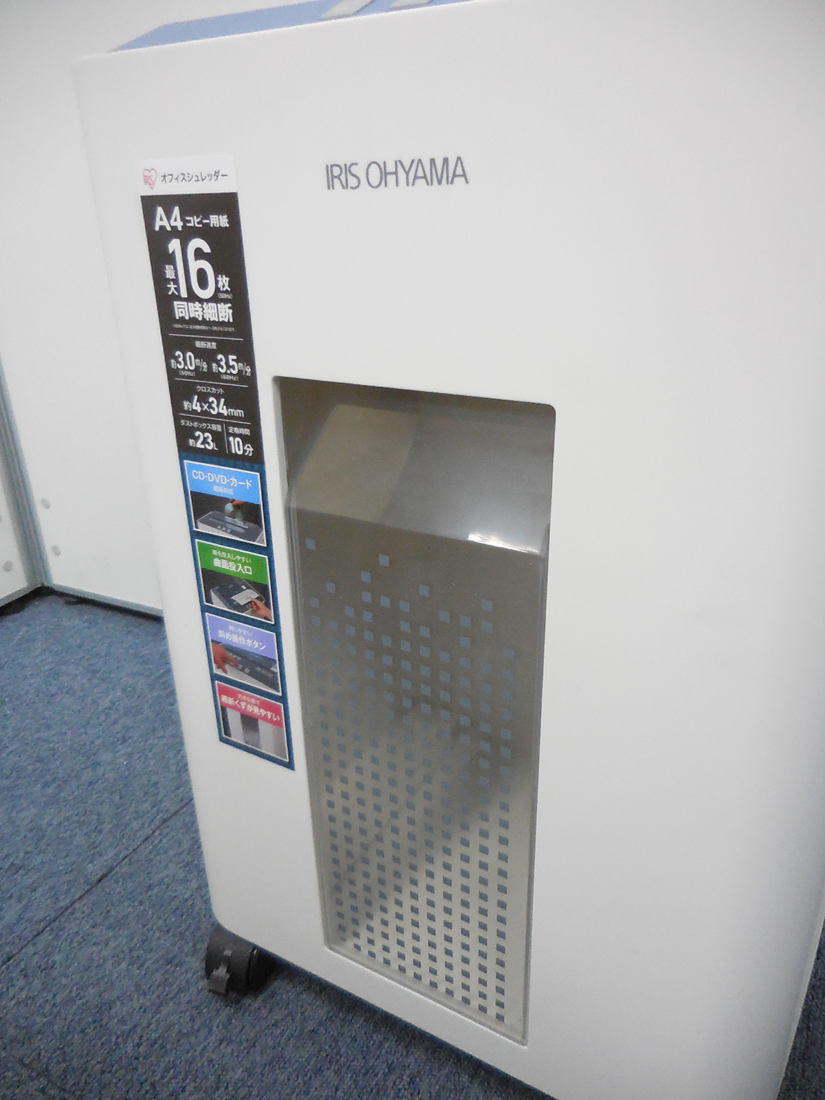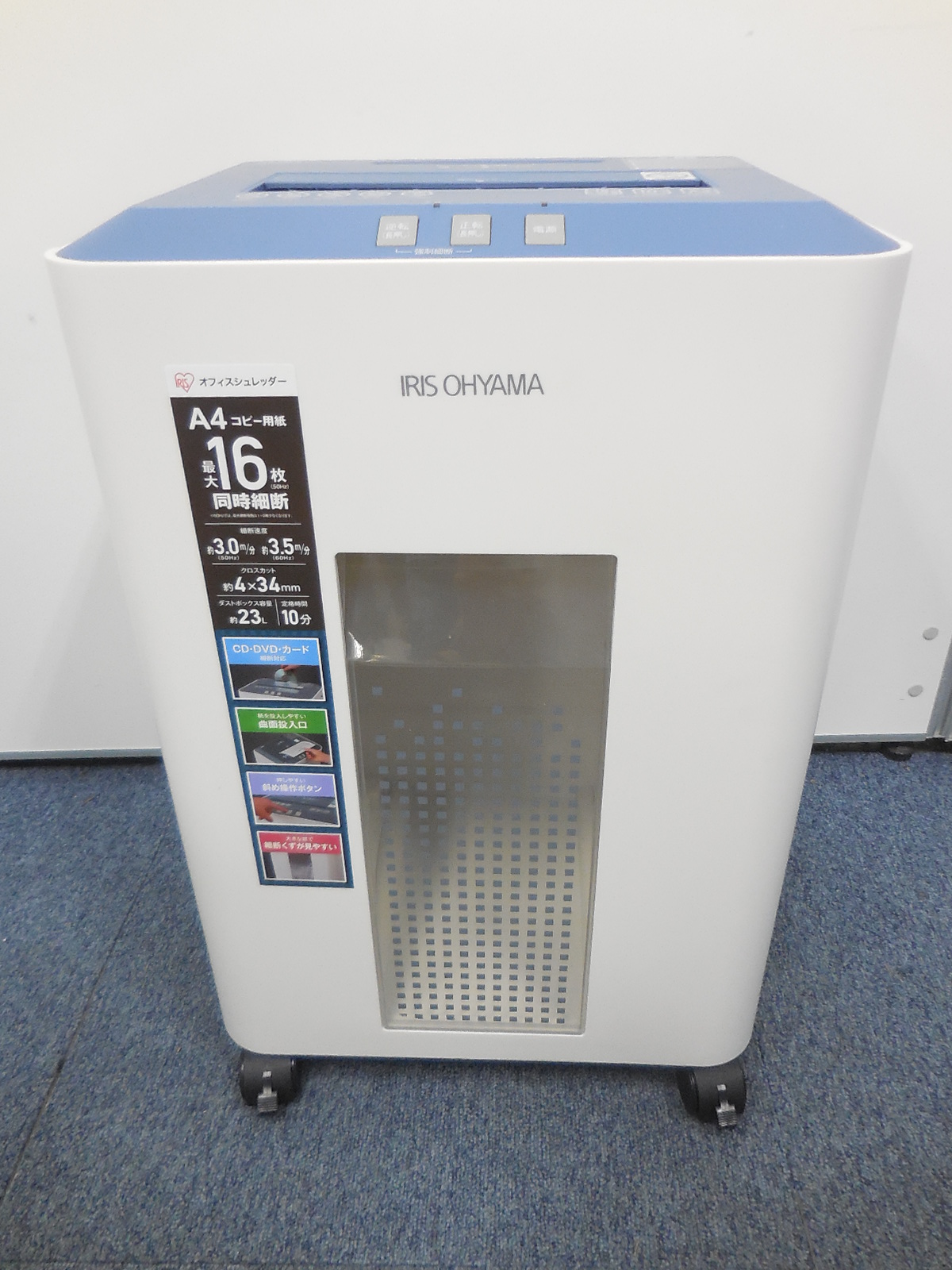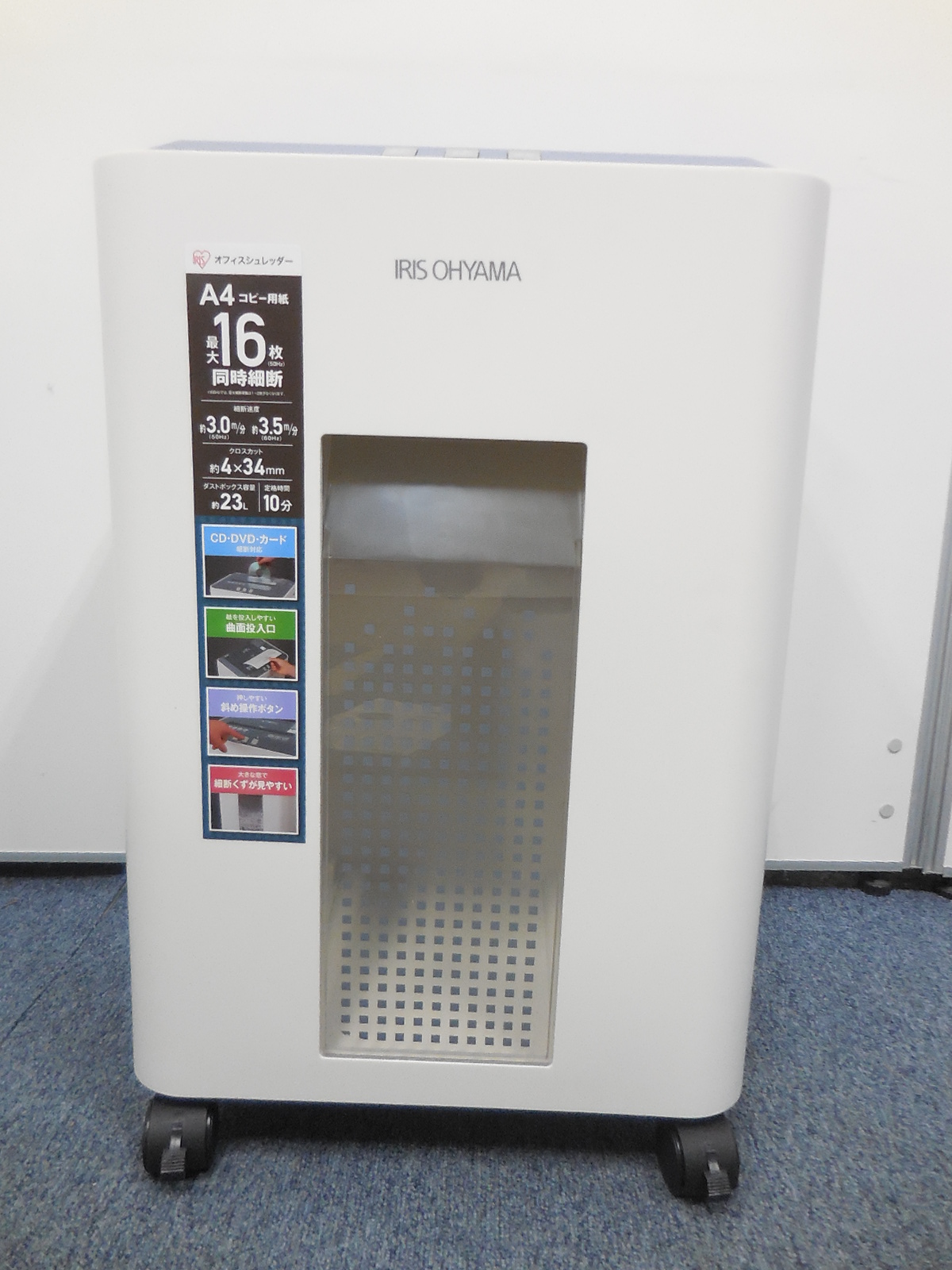 アイリスオーヤマ製のパーソナルシュレッダー、OF16の新古品となります。