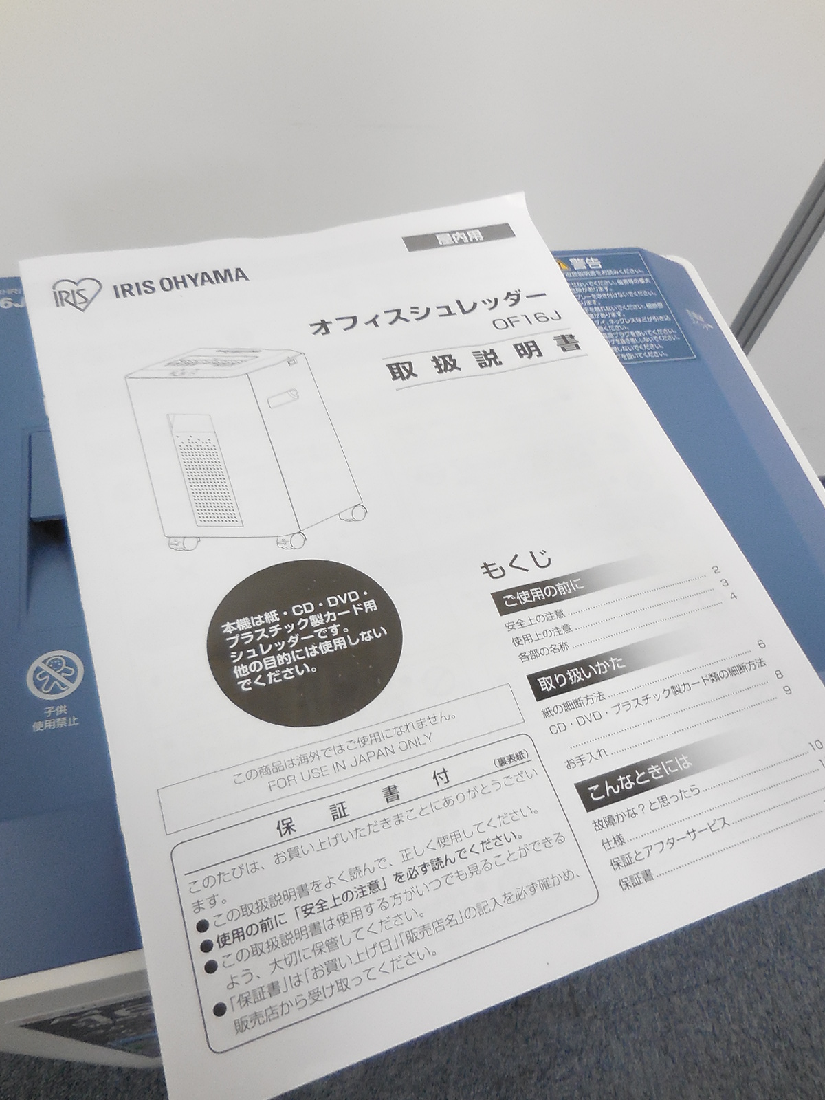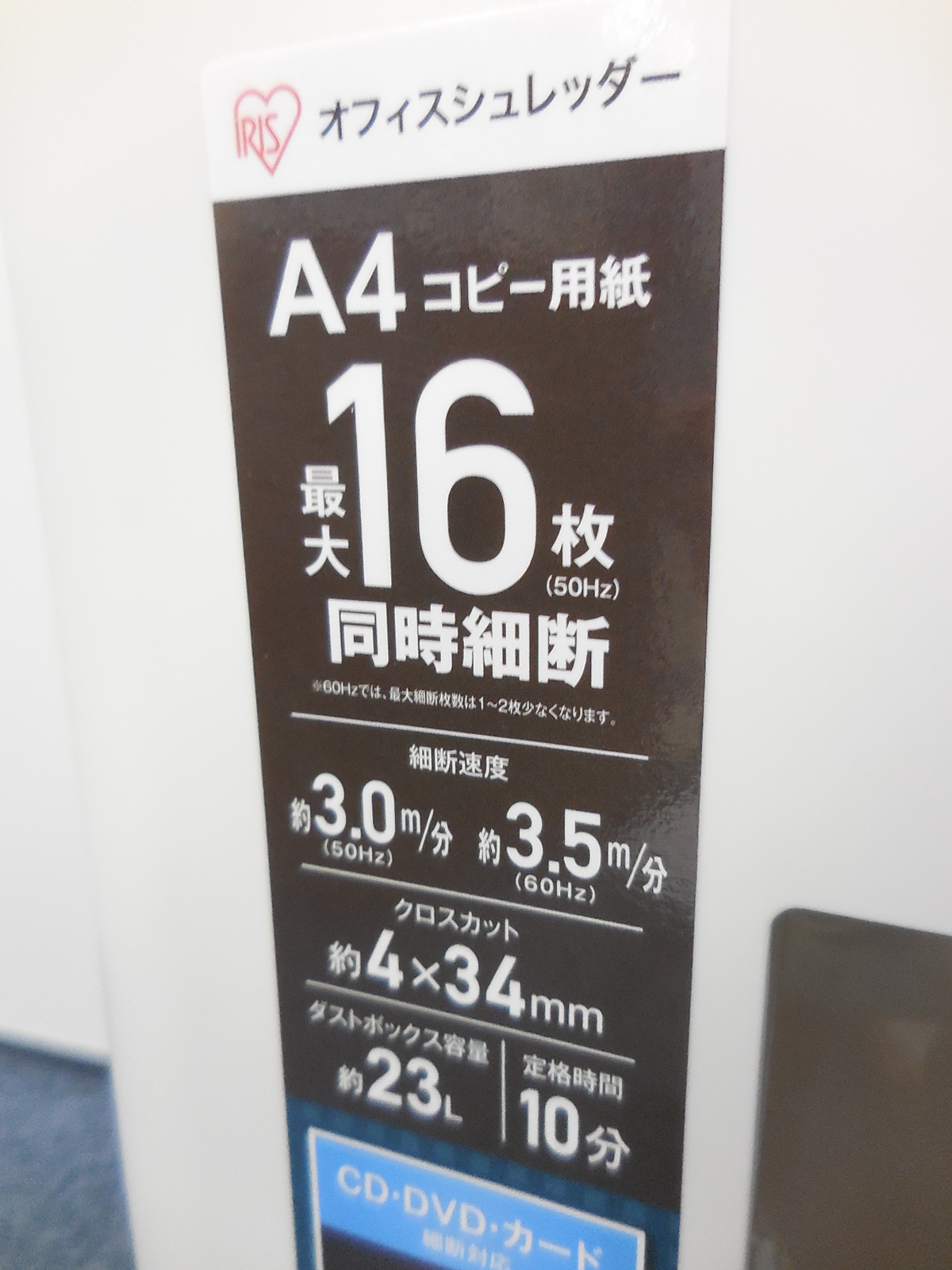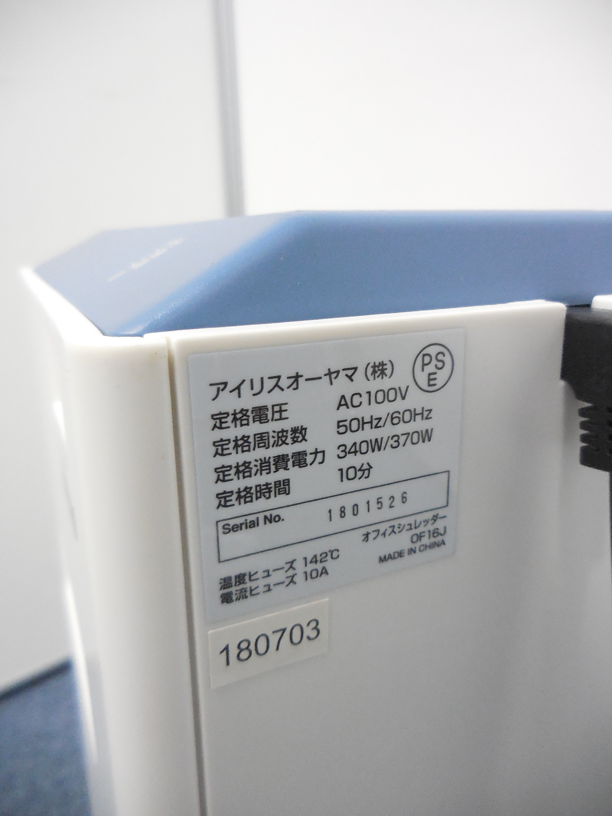 アイリスオーヤマ製のパーソナルシュレッダー、OF16の新古品となります。