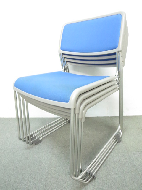 【スタンダードなデザイン!】■コクヨ製 スタッキングチェア4脚セット ブルー- 川崎店