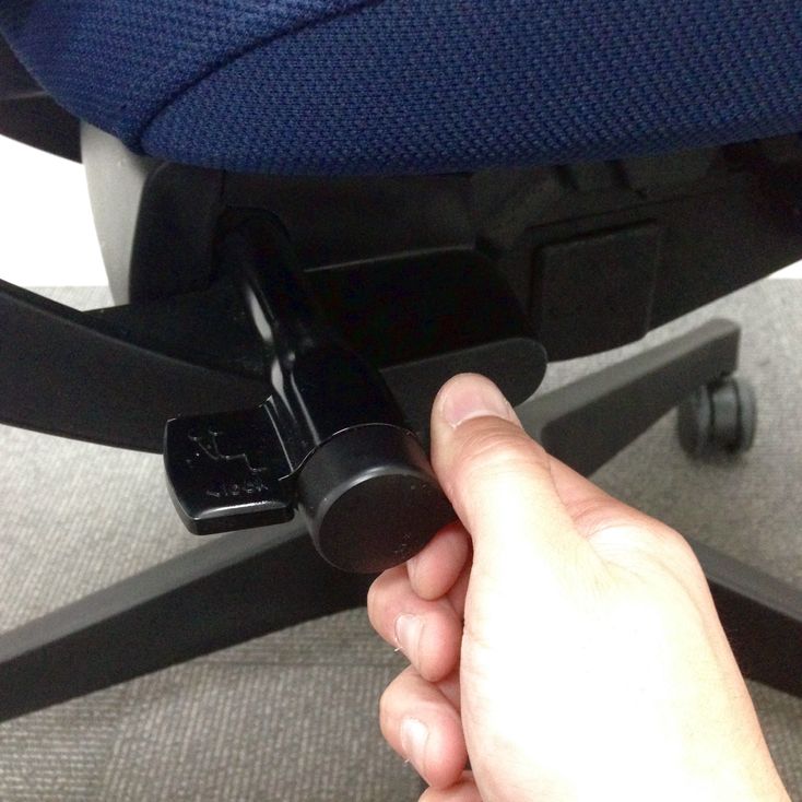 - 座面下のレバー操作により、座面を50mmのストローク(16.7mmピッチ)で好みの位置に調節できます。体格や作業姿勢に合わせたポジション設定が行えます。