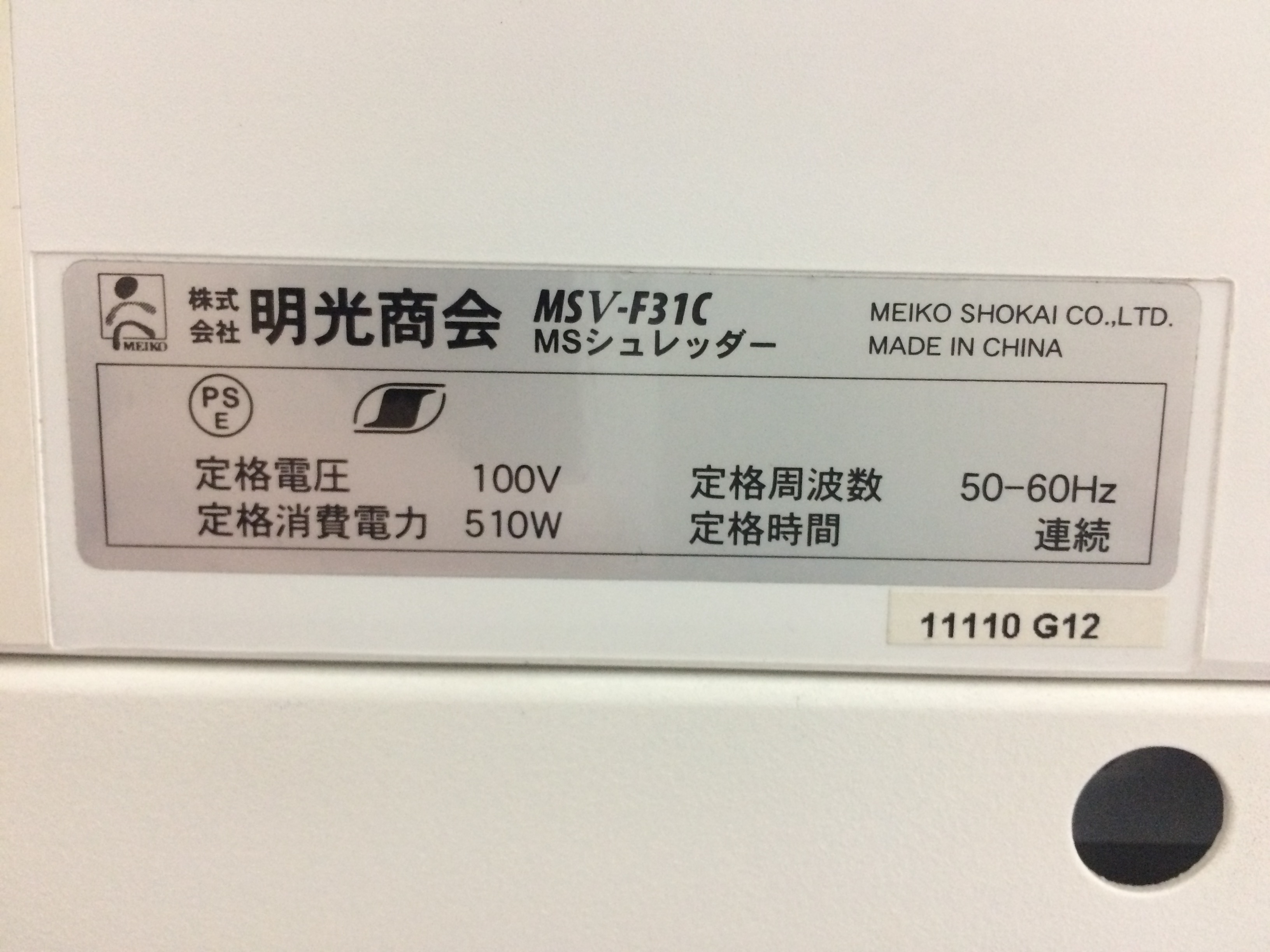 【中古】 MSV-F31C 明光商会 シュレッダー 239624