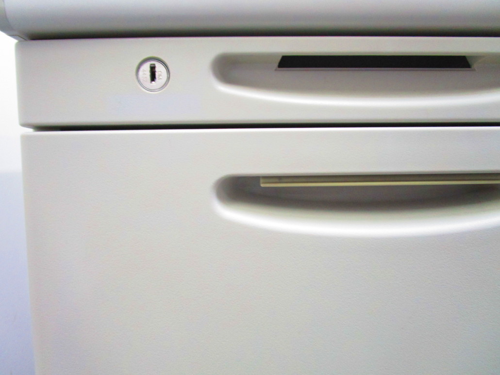 オカムラ SD-V 3段脇机(A4×2+ペントレー) ニューグレー 鍵付き シリンダー錠 奥行800mmの珍しいサイズが入荷