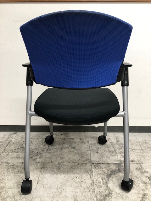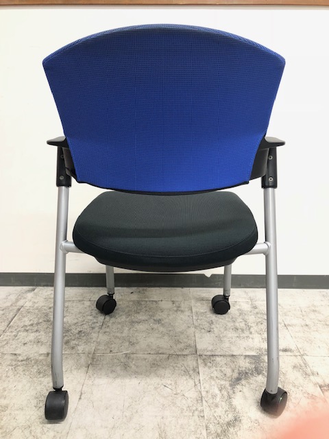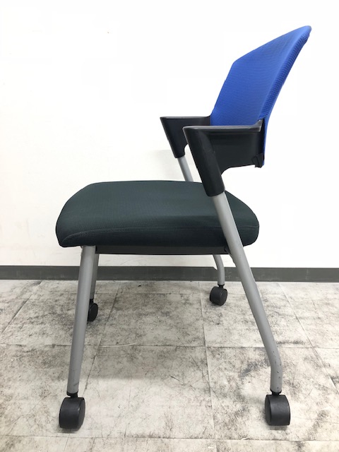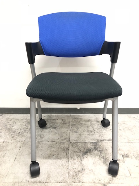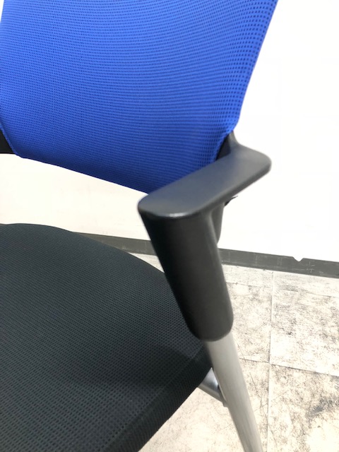 【シンプルスマートなスタッキングチェア!分厚いクッションで長時間でも快適な座り心地!】■コクヨ(KOKUYO)製 プロッティ (Protty) 肘付 ミーテイングチェア スタッキングチェア ■固定肘 ■ブルー×ブラック ■背面ヌードタイプ