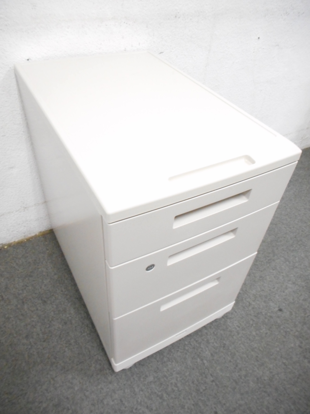 - 一部不具合ありその脇机・ワゴンの本来の効用を果たすための機能以外の一部が使用不可な状態。(例、引出が開閉しづらい、 キャスターロック機能使用不可、ラッチ不良 等がある。)