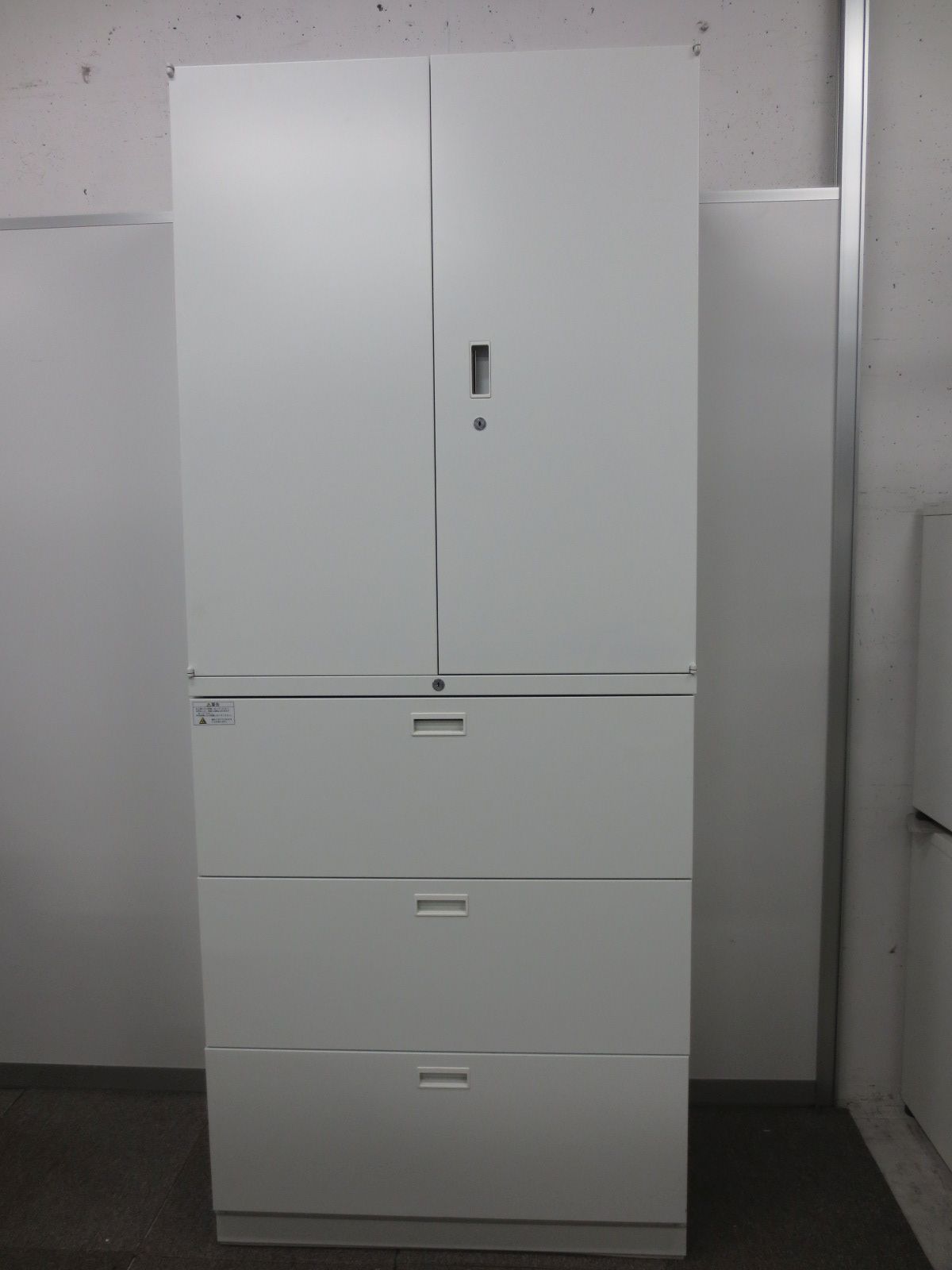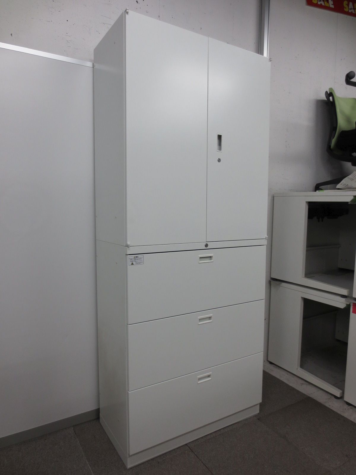 【値下げしました】25,000⇒19,000へ!ホワイトカラーの両開きと3段ラテラルの定番組み合わせ【擦り傷ありのため特価】- 在庫数