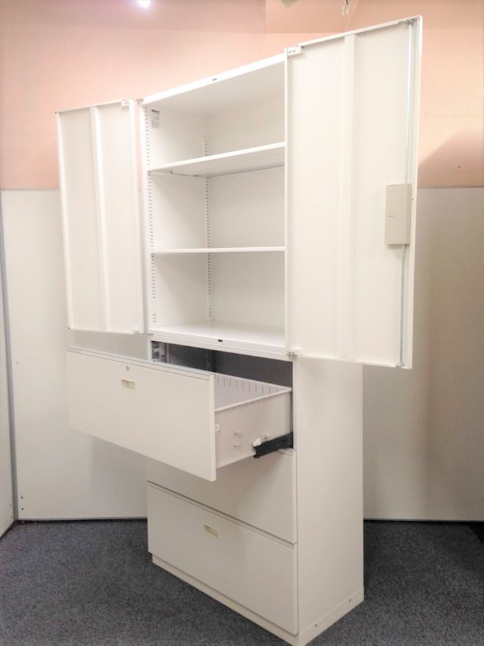 3段ラテラル書庫:大きな引出タイプの書庫です。