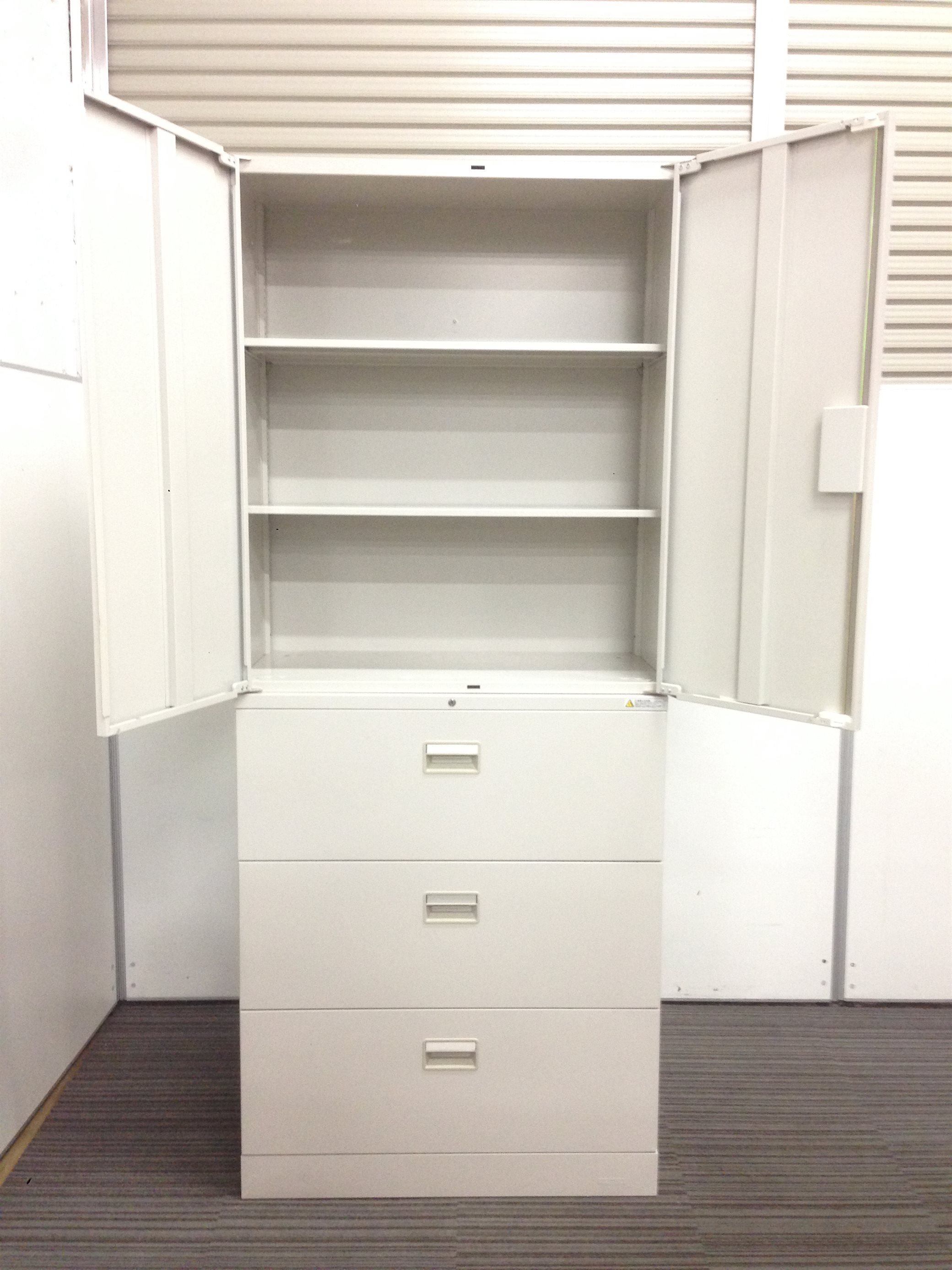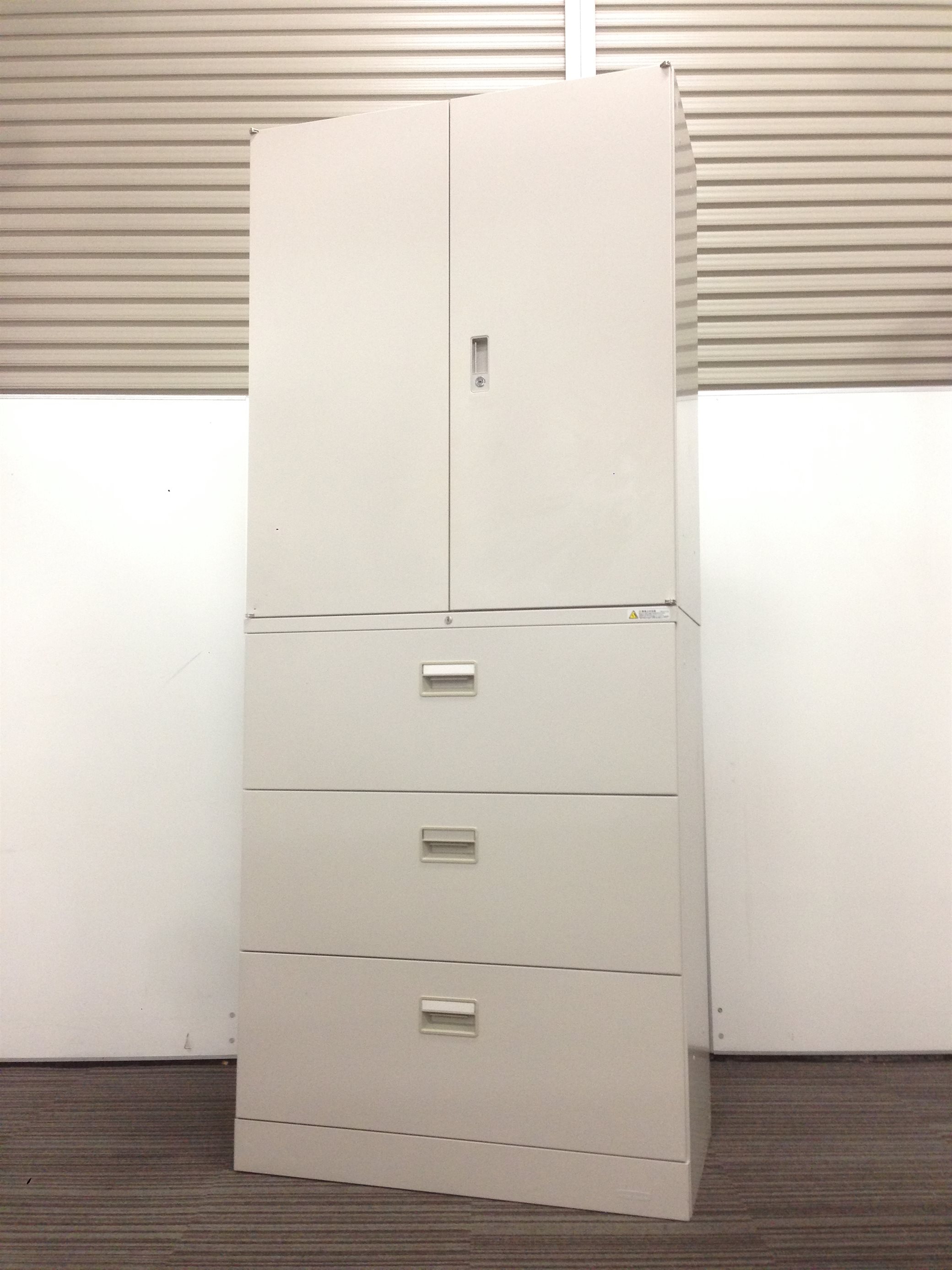 【5台入荷!】オカムラ製の42型シリーズ!どのようなオフィスにも合うニューグレー色!【一番人気の3段ラテラル+両開きタイプ!】- 神戸・三宮店
