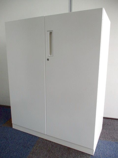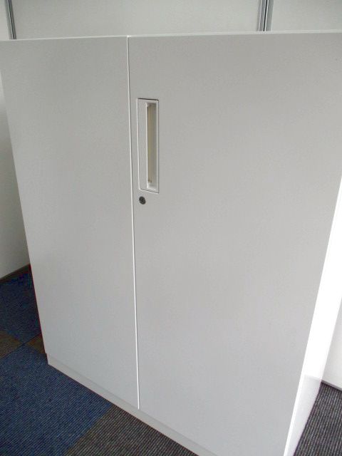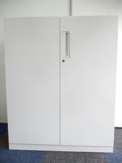 【収納物がひとめで分かる両開き戸タイプ!】■コクヨ(KOKUYO)製 エディア(EDIA)シリーズ 両開き書庫 ローキャビネット H1130㎜ ■天板・ベース付 ■ホワイト ■シリンダー錠