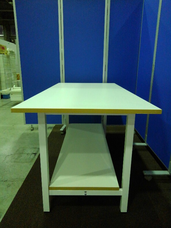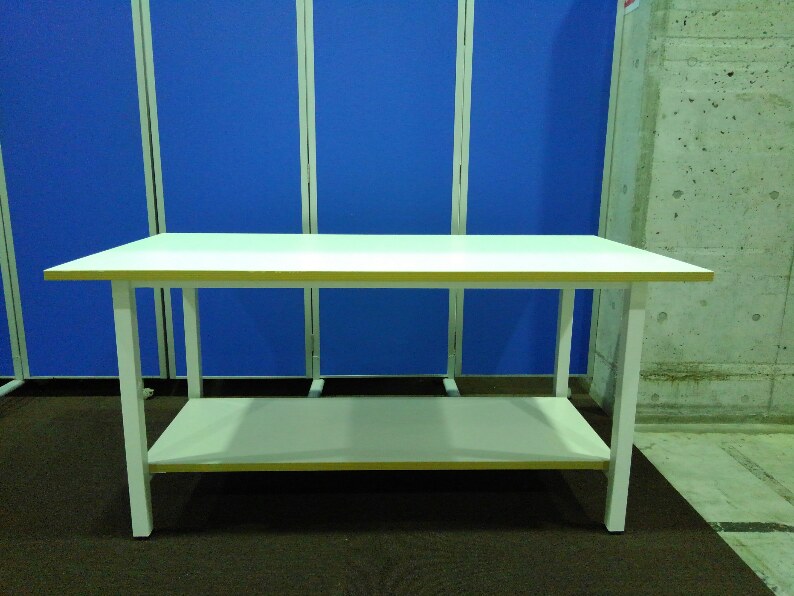 美品の作業台が1台のみ入荷致しました。しかも、棚板付き! ピッキングした商品の梱包作業などの必需品!! アールエフヤマカワ製 作業台の均等耐荷重:約300kg 棚板の均等耐荷重:約100kg アジャスター付き!! ※マテハン本舗の中古商品は、千葉県柏市に在庫がございます。- マテハン本舗