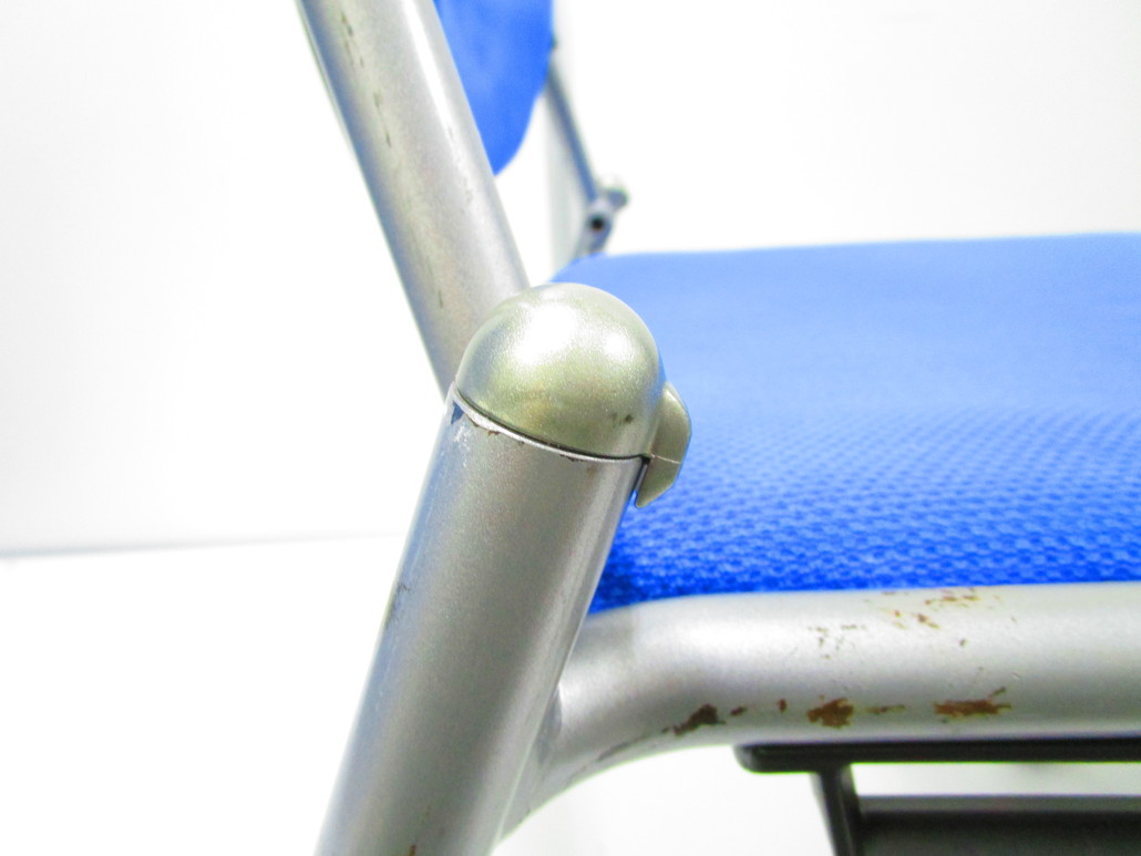 重ねて省スペース化!ブルーのスタッキングチェア!座面状態難ありのため為お安くご案内!【A00557074】サーキュラーバリューCO2削減量の算出について