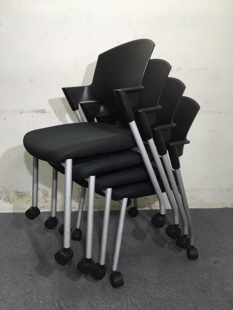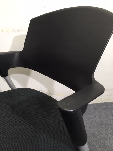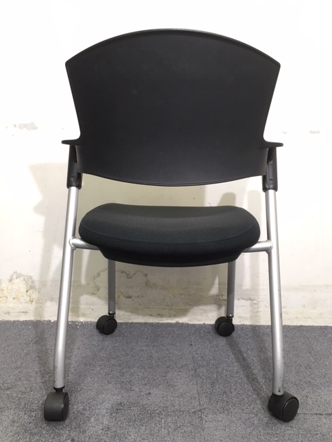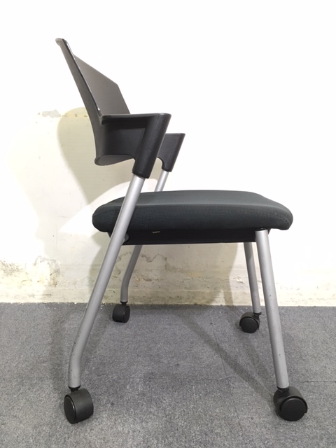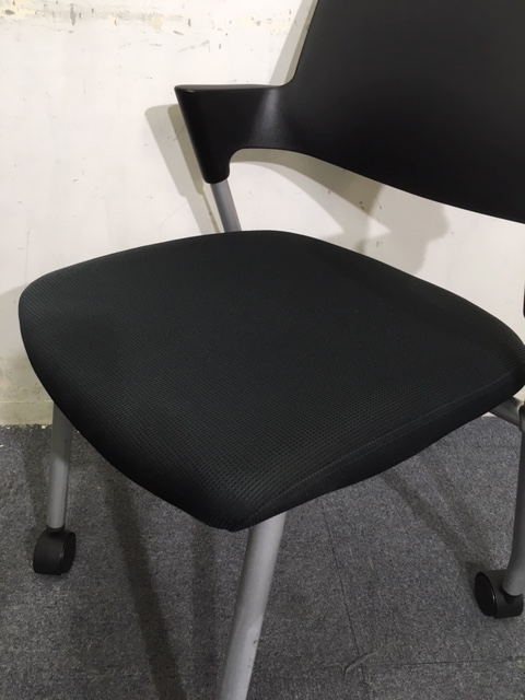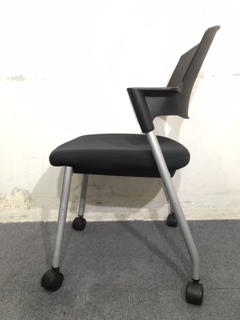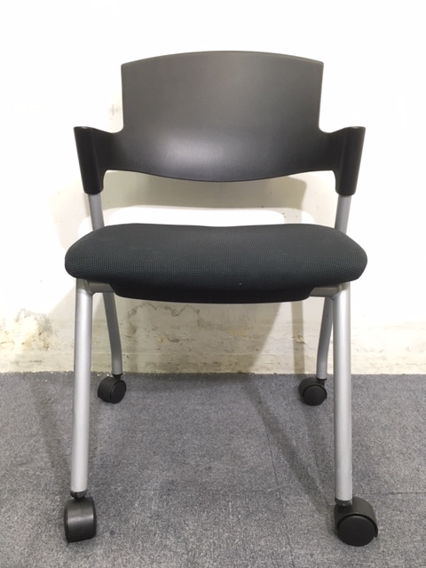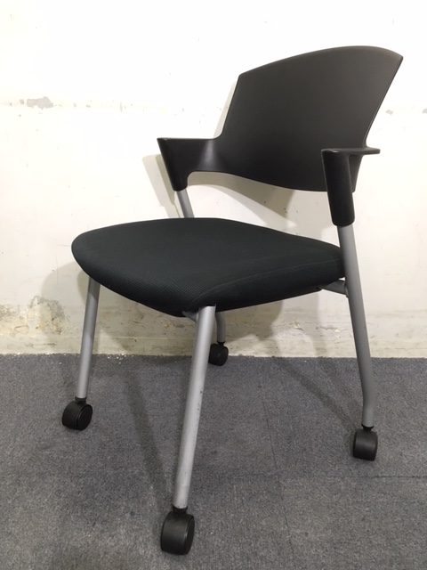 【シンプルスマートなスタッキングチェア!分厚いクッションで長時間でも快適な座り心地!】■スタッキングチェア 肘付ミーティングチェア ■固定肘 ■キャスター付 ■ブラック ■背面樹脂/コクヨ(KOKUYO/プロッティ