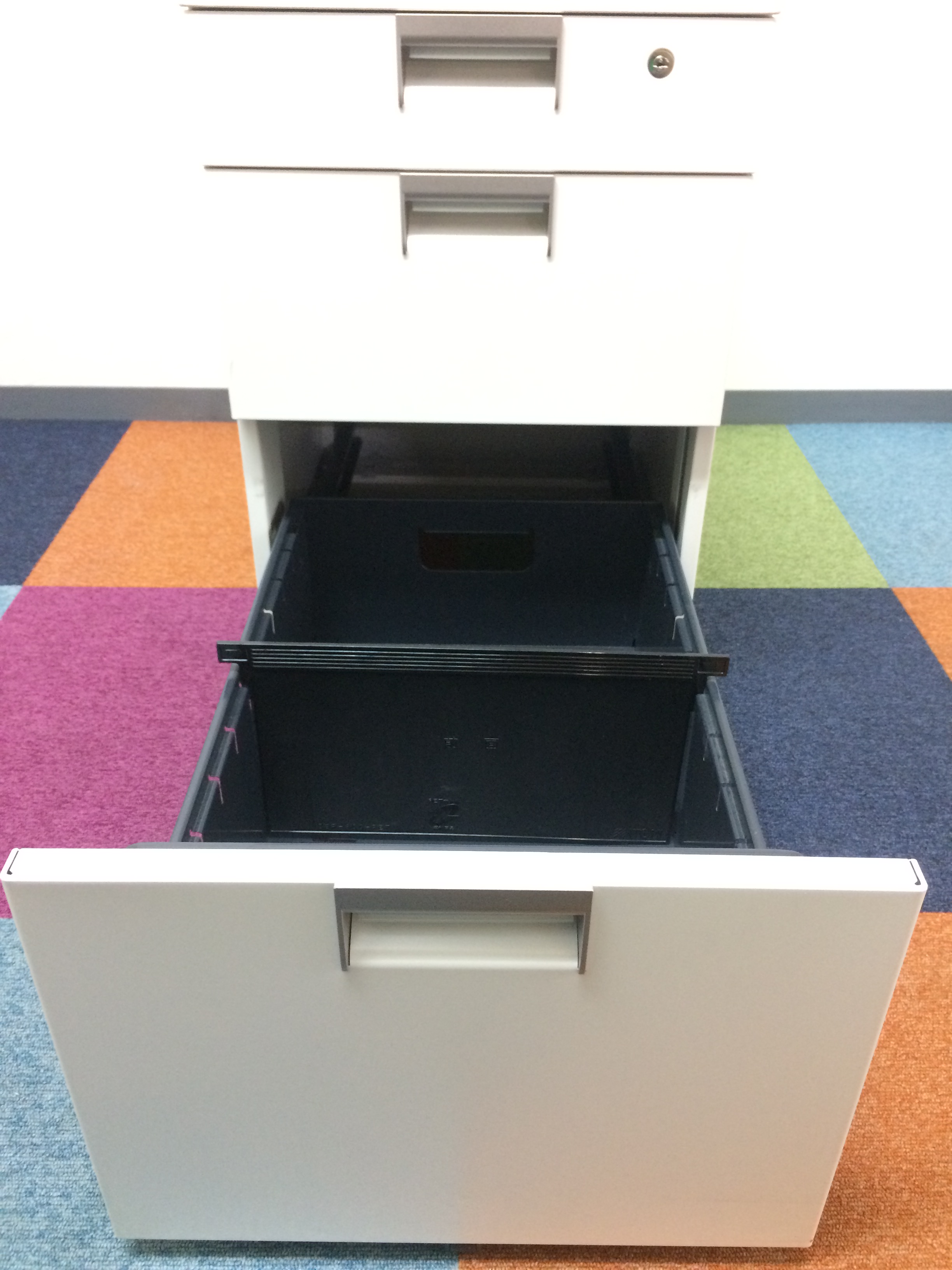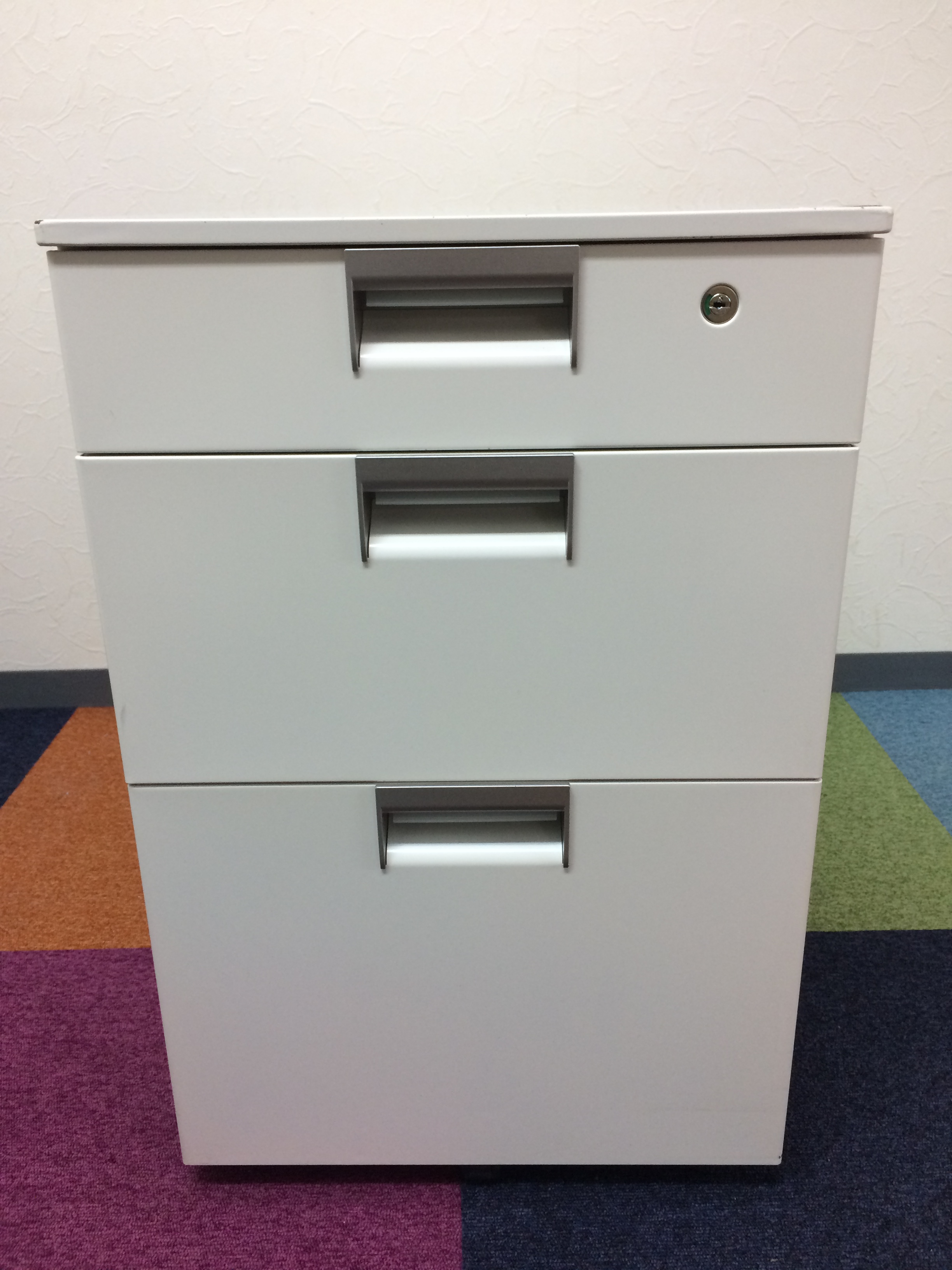 ホワイトで通常H700mmのデスクにも収納が出来るタイプです。