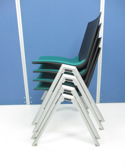 [単品購入¥12,000⇒セット購入¥10,000]内田洋行製 スタッキングチェア ■垂直方向にスタック可能!!落ち着いたグリーンカラー!!- 足立・葛飾店