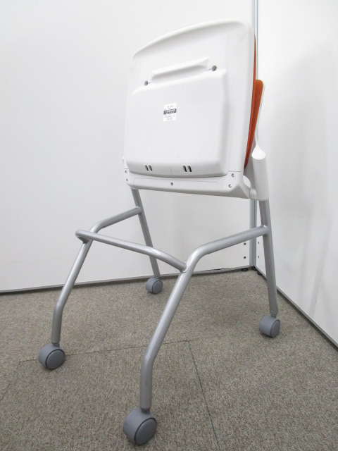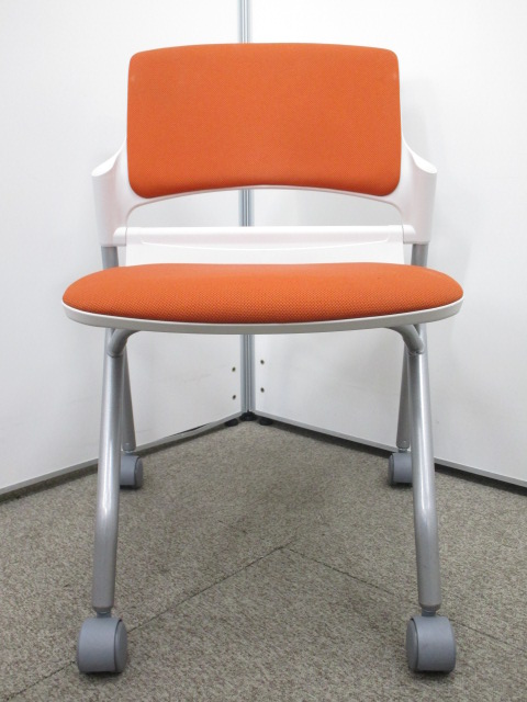 【鮮やかなオレンジがオフィスを飾る!】ポップなデザインのネスティングチェア!キャスター付で移動楽々です!【スタック】- 池袋店