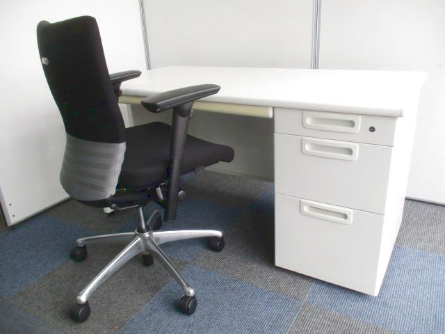 【上長様にオススメでお得なセット】幅1400mm片袖机と肘付OAチェア【大量に在庫がそろっております!】- 千葉店