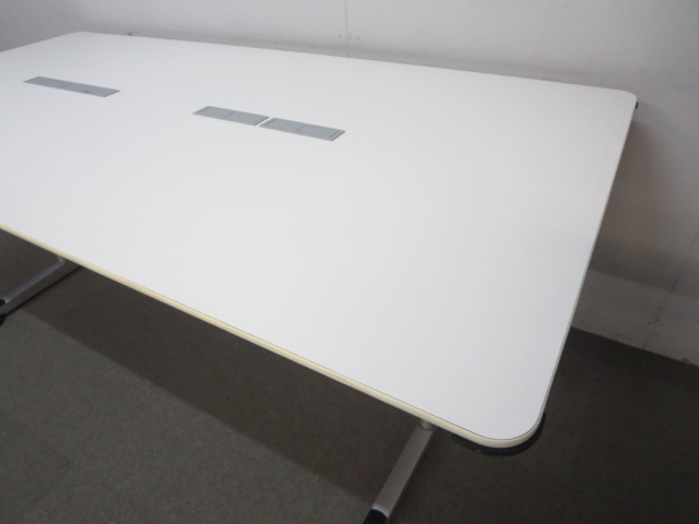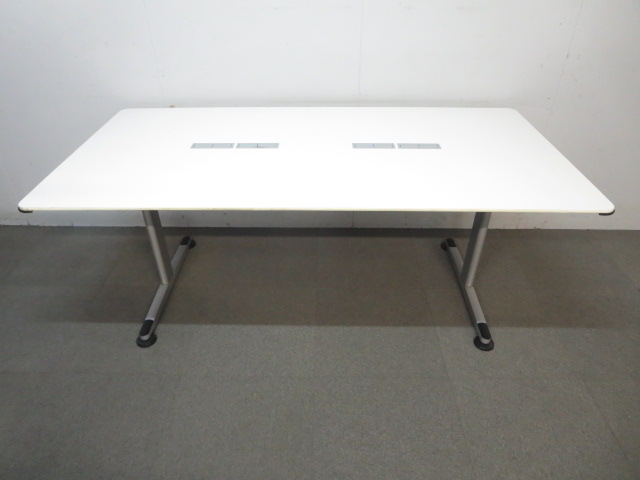 【配線が通せる!OA会議をサポート!】■ミーティティングテーブル(W1800mm)ホワイト- 川崎店