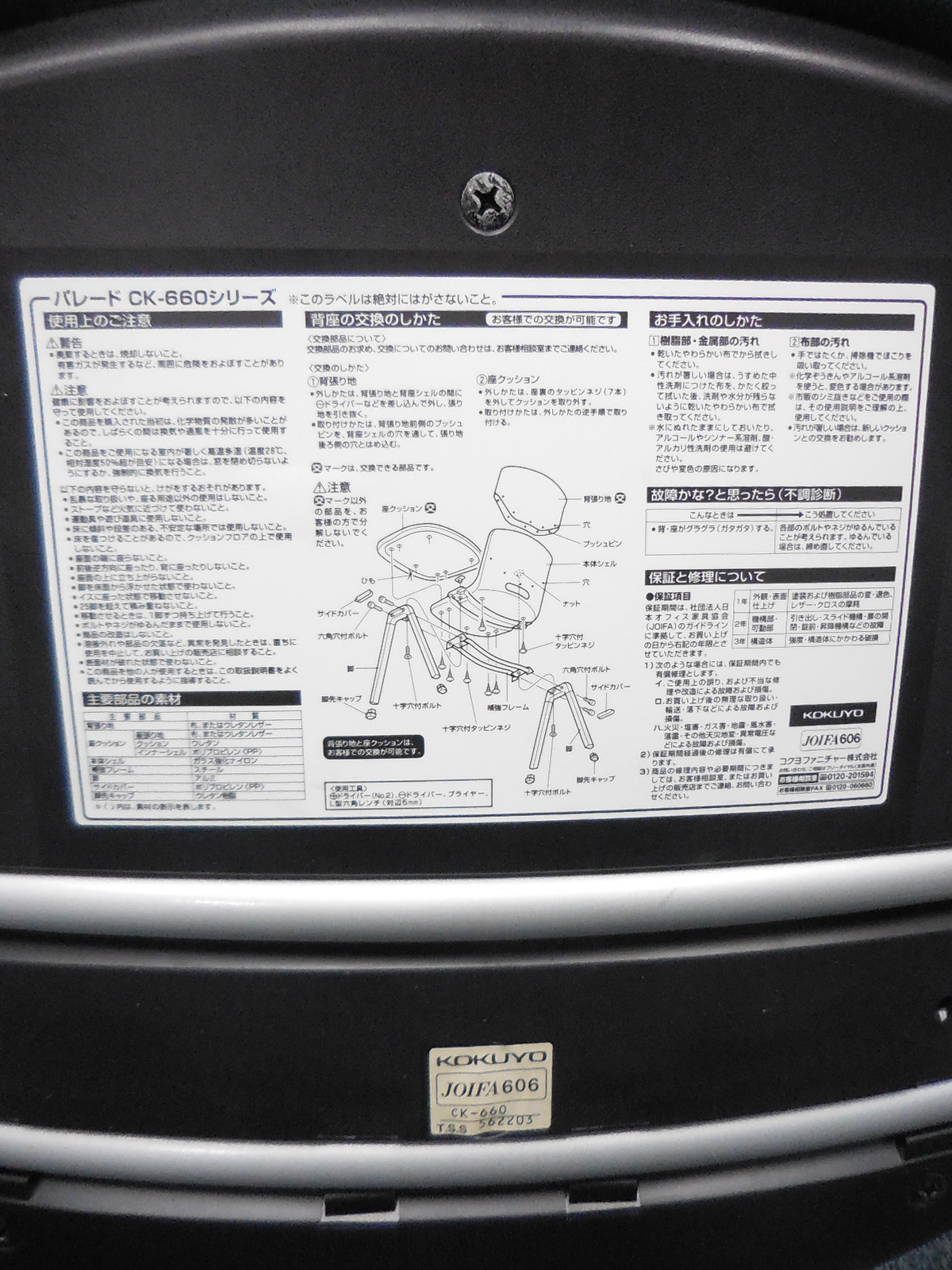 【中古】 パレード CK-660 コクヨ/KOKUYO スタッキングチェア 240512