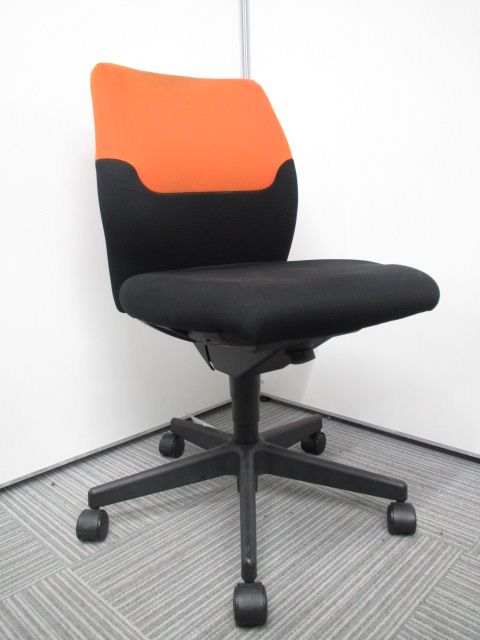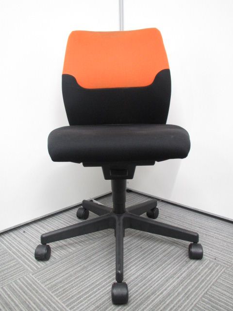 体を包み込むフィット感のあるオフィスチェア コクヨ製 コラードチェア オレンジとブラックのツートンカラータイプ!!サーキュラーバリューCO2削減量の算出について
