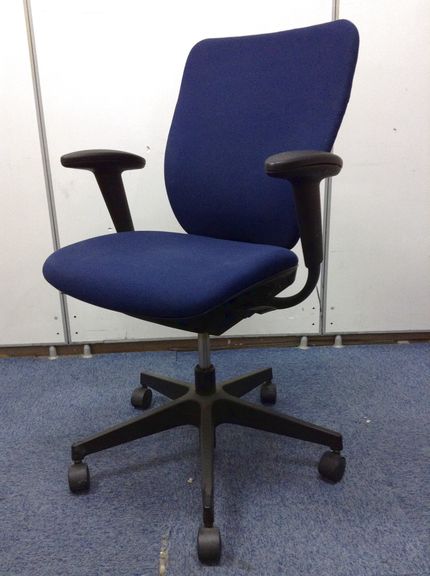 【一人ひとりにマッチする座り心地!ミドルクラスの定番チェア!】■イトーキ(ITOKI)製 プラオ(PRAO)チェア 肘付ハイバック ■ストロングブルー×ブラックシェル ■可動肘(ソフトパッド) ■ランバーサポート付き