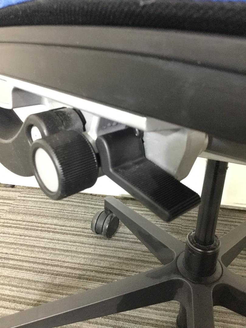 快適な座り心地に不可欠な調節機能である、上下昇降、座面の奥行き調整、リクライニングなどを備えており、操作もわかりやすく好評です。 特に、座面の奥行きは、座面下の左右に通った細いバーで調整でき、座ったままで軽やかに滑るように調整が可能です。 価格面では、新品では高めですが、中古は流通も多く、定価の3割前後の価格で高級チェアの座り心地を手に入れることができます!