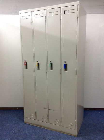 【衣類や個人の荷物の管理に!増員や移転に併せて!】■コクヨ(KOKUYO)製 LKシリーズ 4人用更衣ロッカー ■シリンダー錠 ■ニューグレー オフィスバスターズ東大阪店 鍵付き