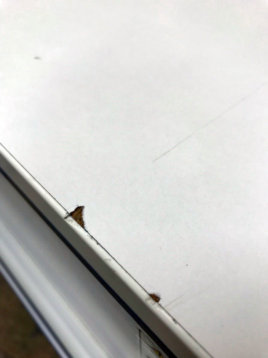 - あり黄ばみ・変色が広い範囲にうっすらある、または濃い黄ばみ・変色が一部ある。(例、天板、正面、背部、サイド部分にある。)