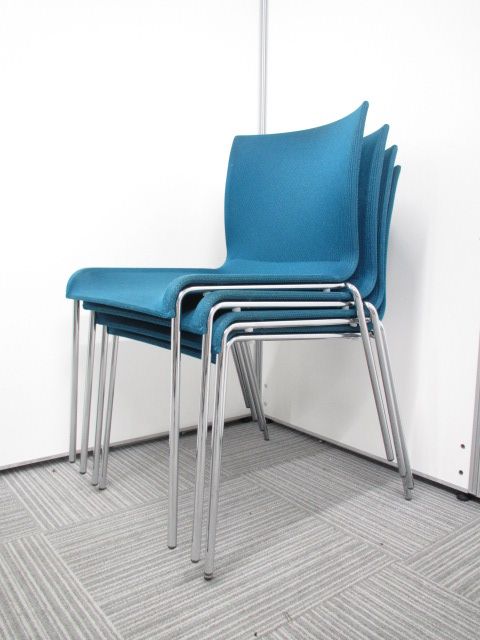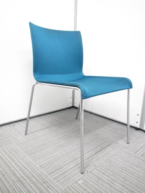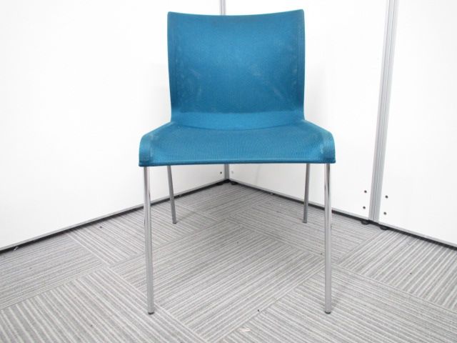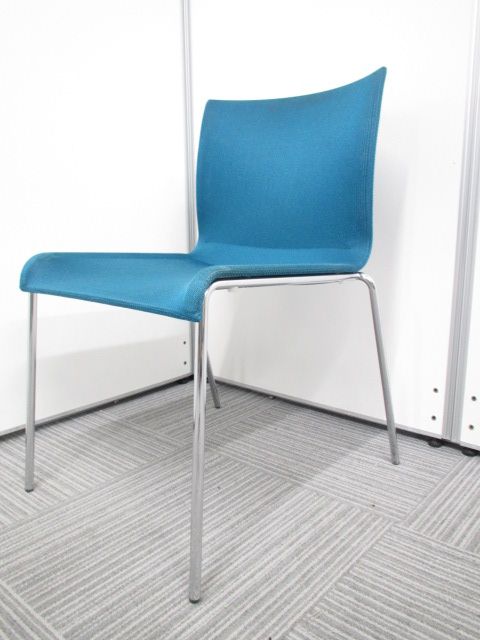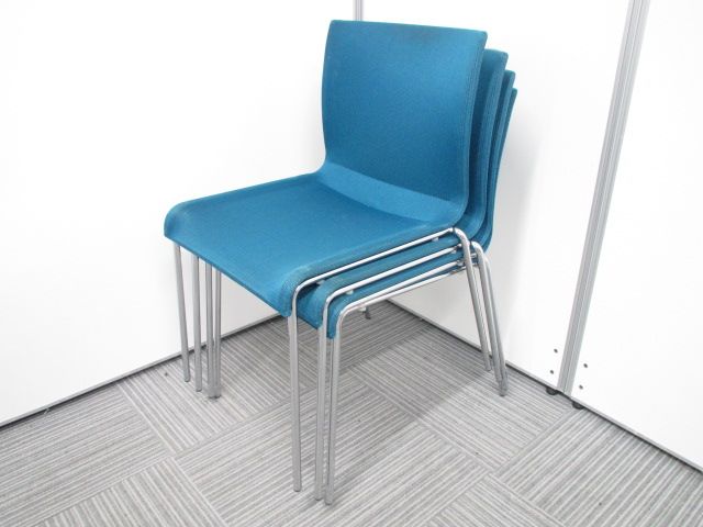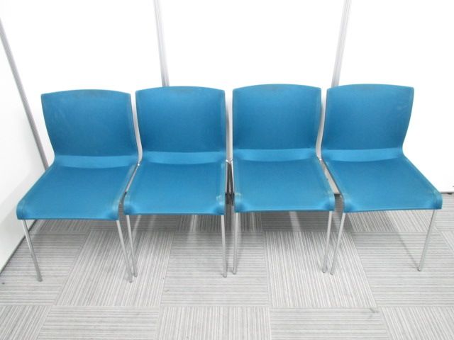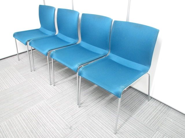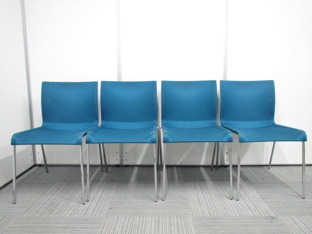 【4脚セット商品】お洒落なメッシュ製のスタッキングチェア ブルーカラー|会議室や休憩室におすすめ!- 在庫数