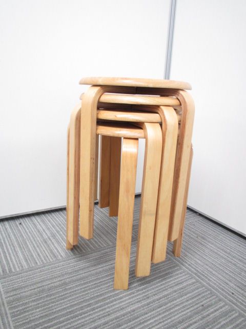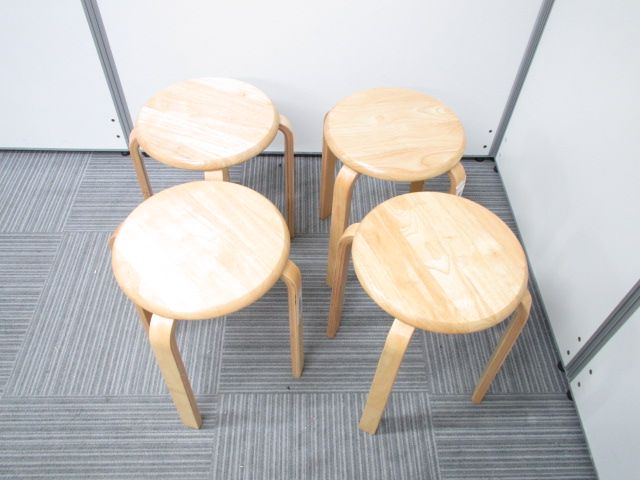 【4脚セット】【店頭に在庫あります!】木製丸椅子/丸イス|スタッキング可能!- 在庫数