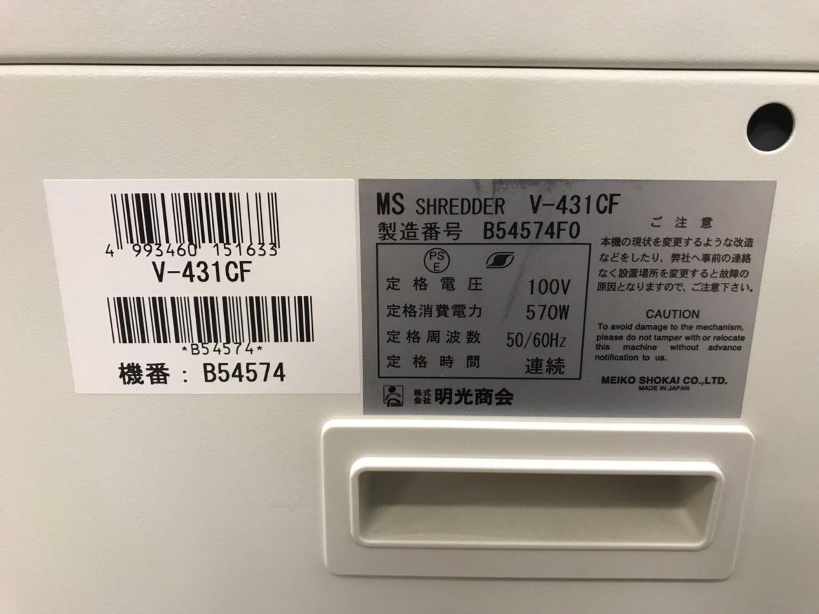 明光商会製・MS V431シュレッダーの入荷です!!
