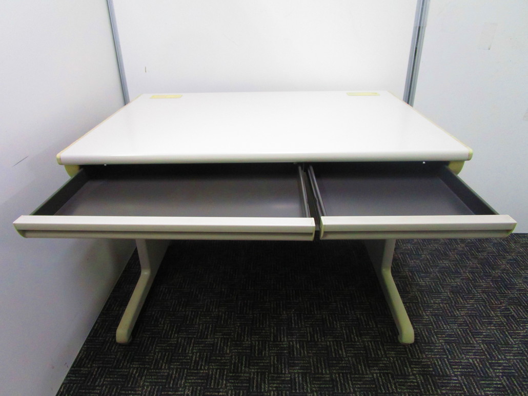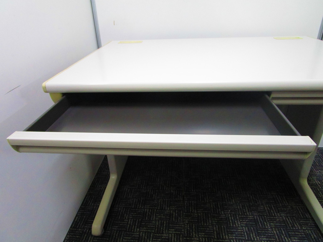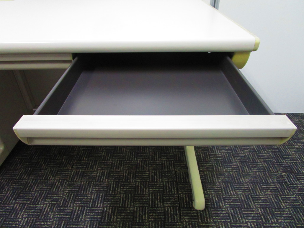 - 袖机のワゴンは、最下段がロング引出しになっており、従来より収納力120%アップ。