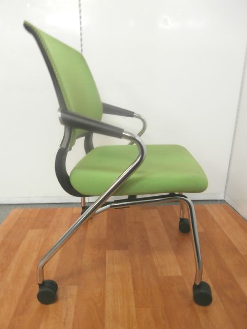 【快適な座り心地の人気シリーズ】■コクヨ製 ■サテリテ ■グリーン ■ネスティングチェア ■会議用 ■国内メーカー- 仙台店