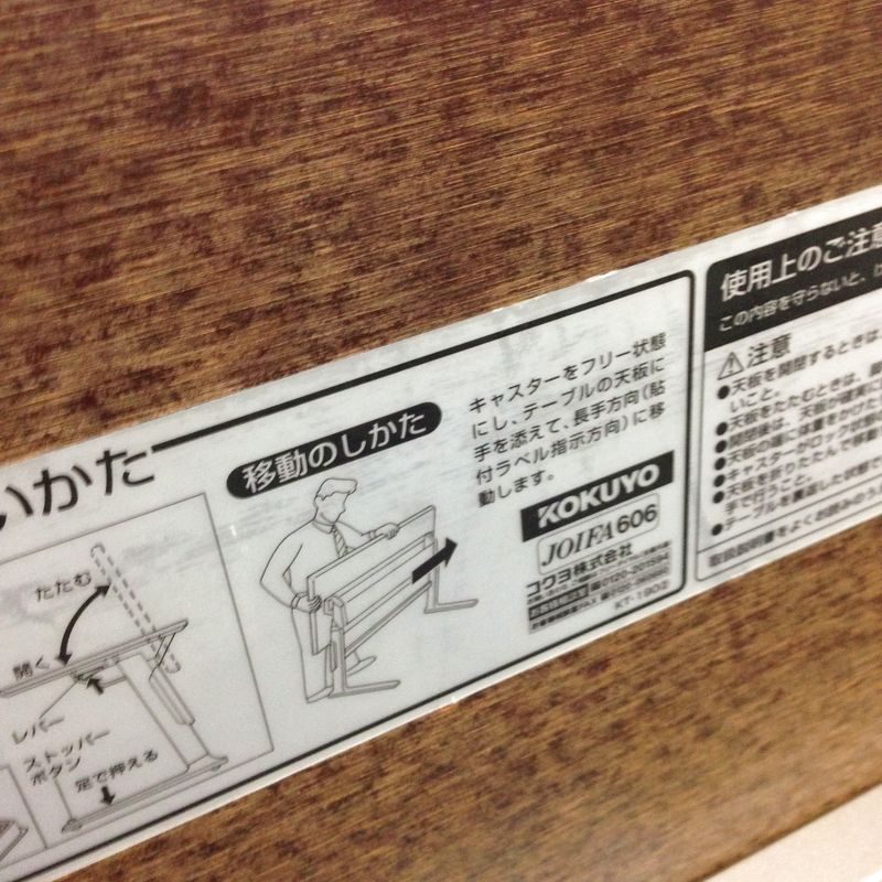 - 一部不具合あり天板歪み、アジャスター無し、キャスター使用不可ようなそのテーブルの本来の効用を果たすための機能以外の一部が使用不可な状態。(例、キャスターロッ ク機能使用不可、棚板無し等がある。)