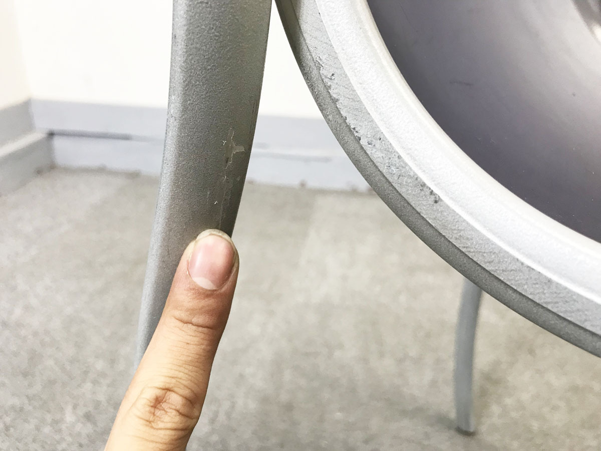 - 目立つ箇所あり傷・破れ・ほつれ・へたり・しわが多数または深い傷・破れ・ほつれ・へたり・しわが一部ある。※座面・背もたれ、シェル、脚部等にある。