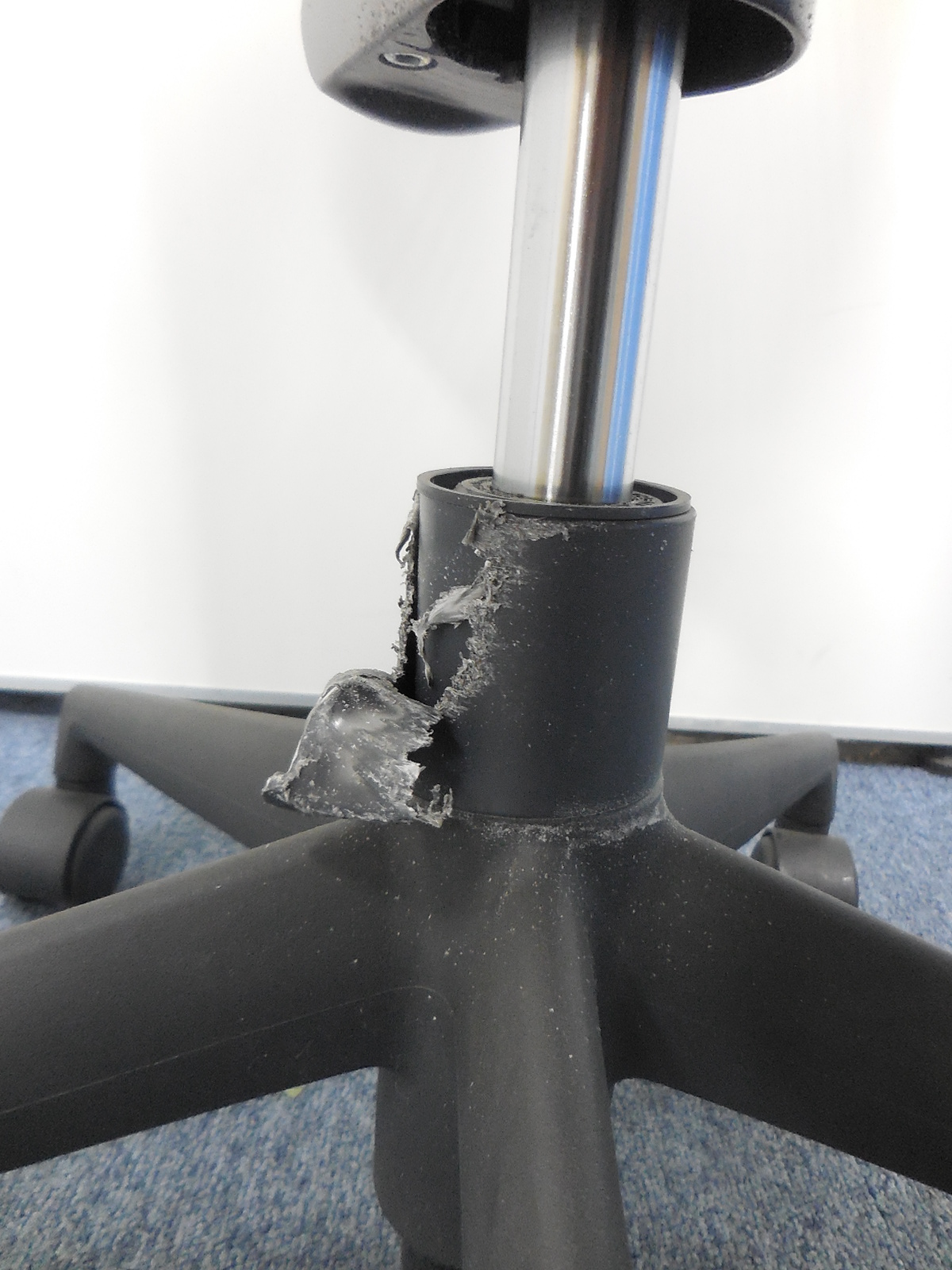 - 不具合多数そのチェアの本来の効用を果たすための機能に不具合ある。(例、オフィスチェアの上下昇降キャスター付きミーティングチェアのキャスター使用不可のような不 具合)