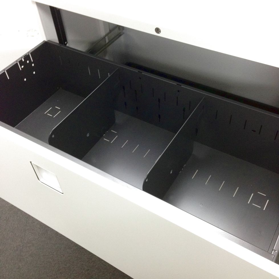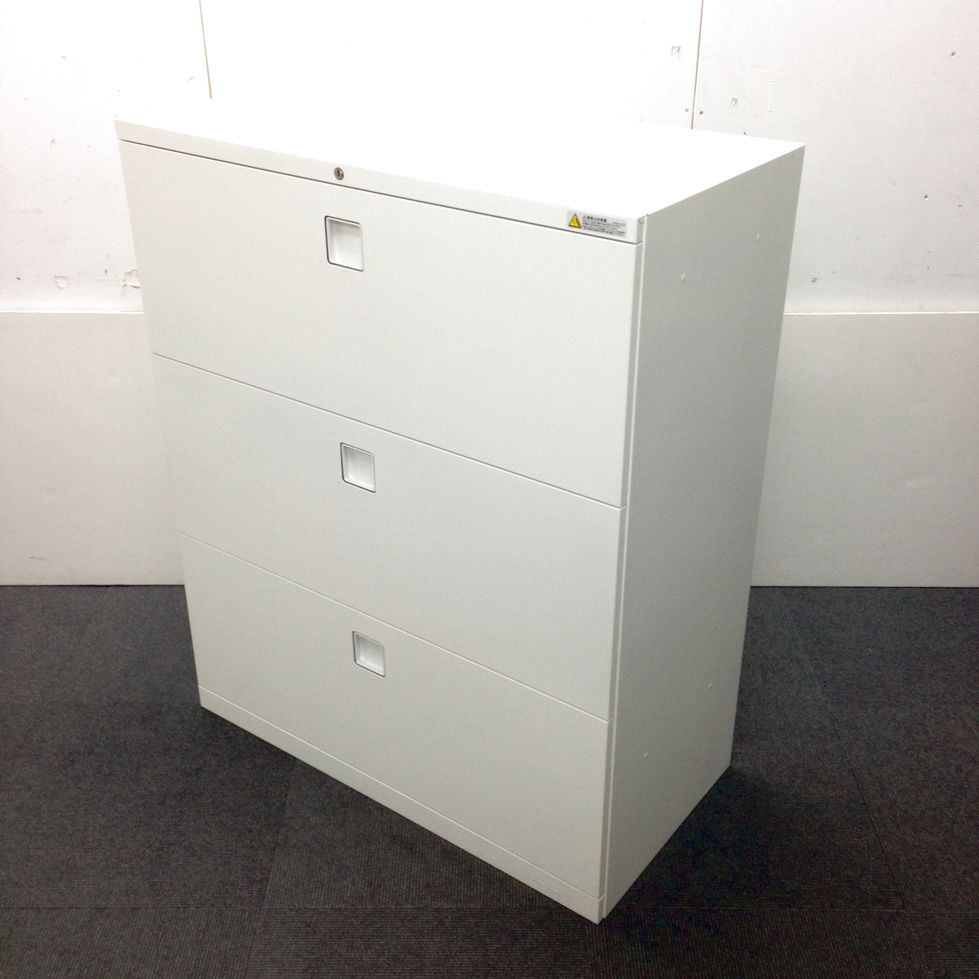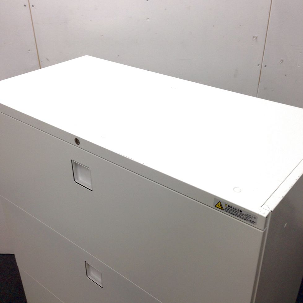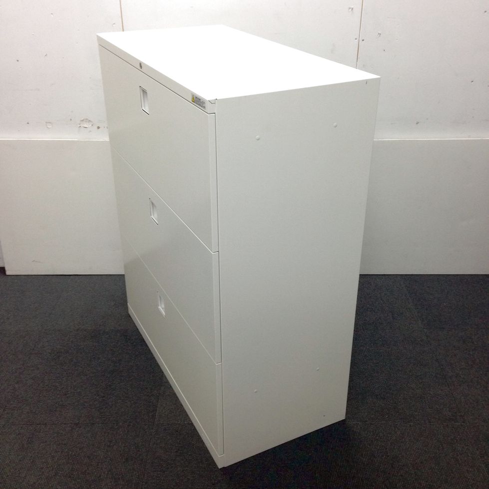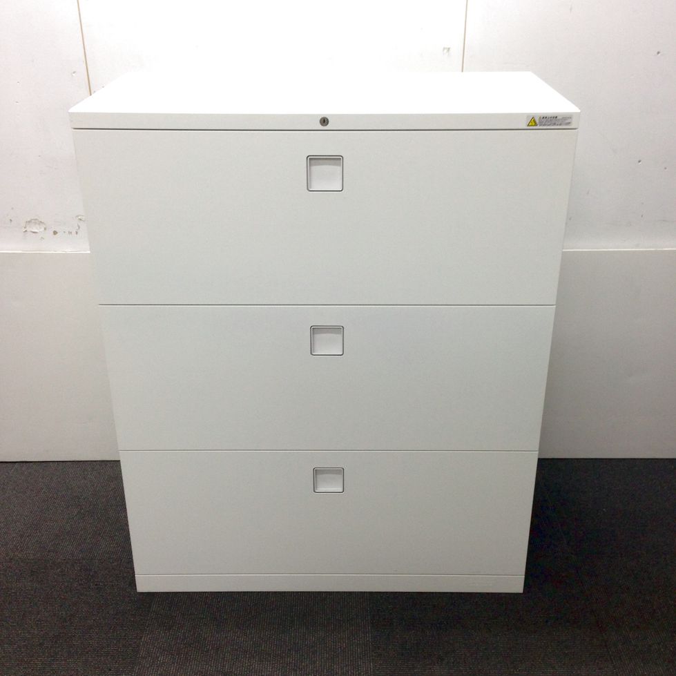 ■オカムラ(okamura)製 レクトラインシリーズ 3段ラテラル ローキャビネット ■天板・ベース付 ■シリンダー錠 ■ホワイト ■収納力抜群【弊社使用欄:A01037187】【SN】