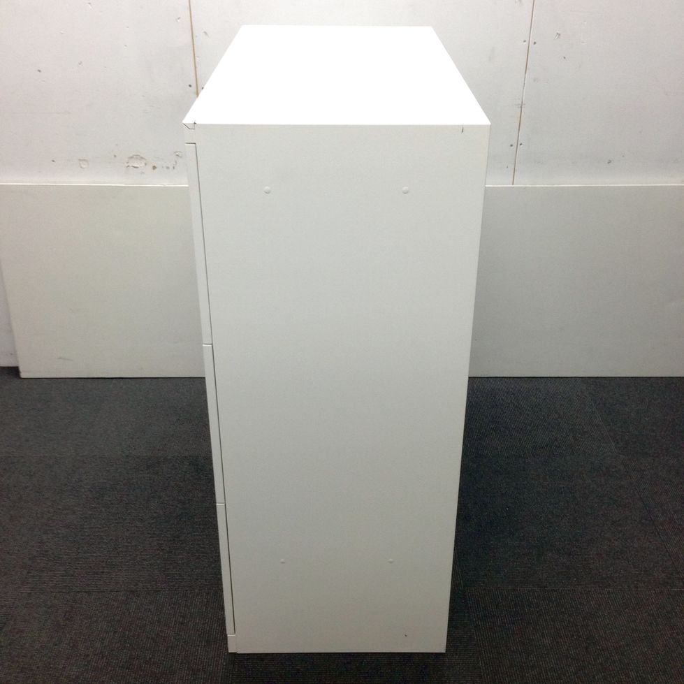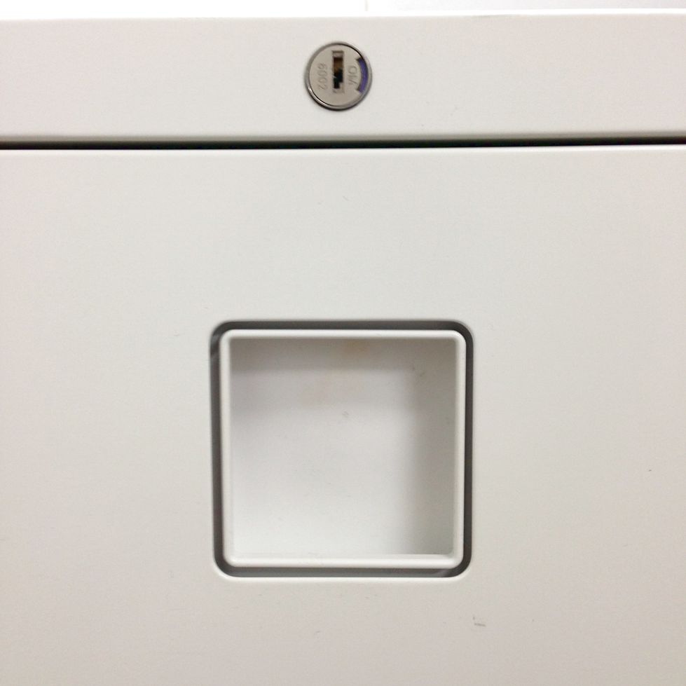 オカムラ レクトライン 3段ラテラル書庫 ホワイト天板 シリンダー錠 鍵付き ※取っ手部分に若干日焼けあり