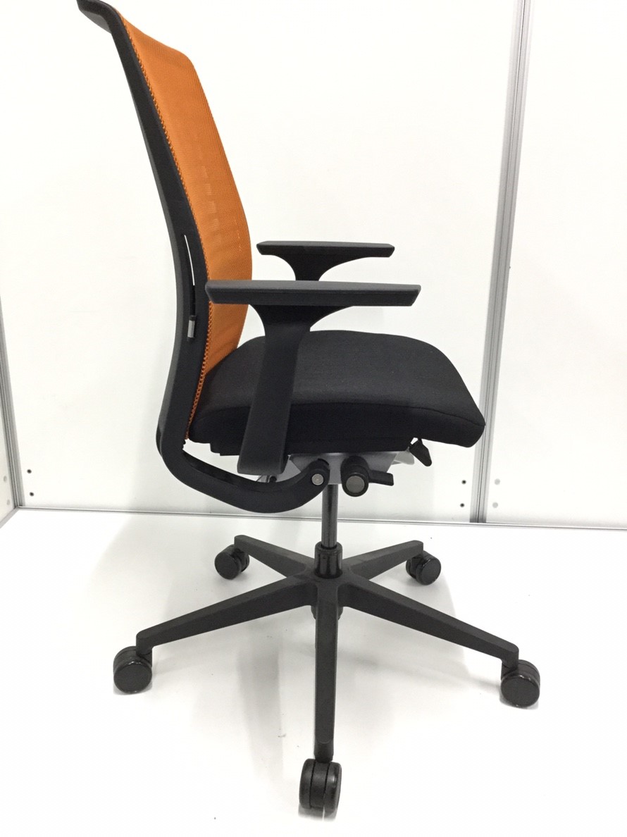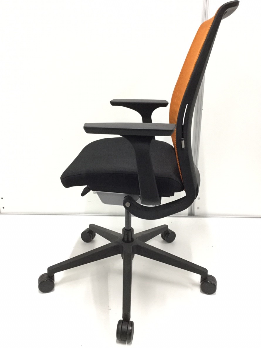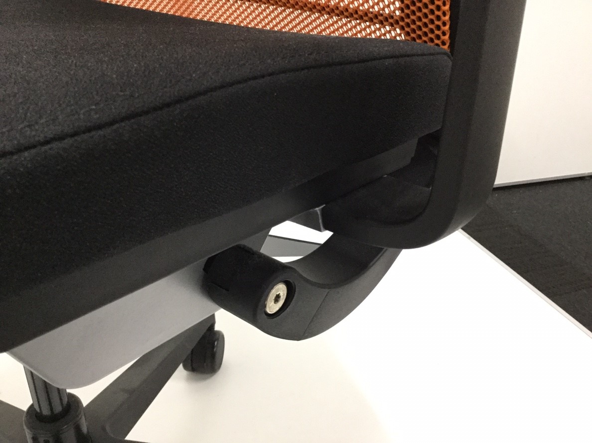 快適な座り心地に不可欠な調節機能である、上下昇降、座面の奥行き調整、リクライニングなどを備えており、操作もわかりやすく好評です。 特に、座面の奥行きは、座面下の左右に通った細いバーで調整でき、座ったままで軽やかに滑るように調整が可能です。 価格面では、新品では高めですが、中古は流通も多く、定価の3割前後の価格で高級チェアの座り心地を手に入れることができます!