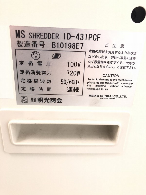 【中古】 MS-ID431PCF 明光商会 シュレッダー 241213