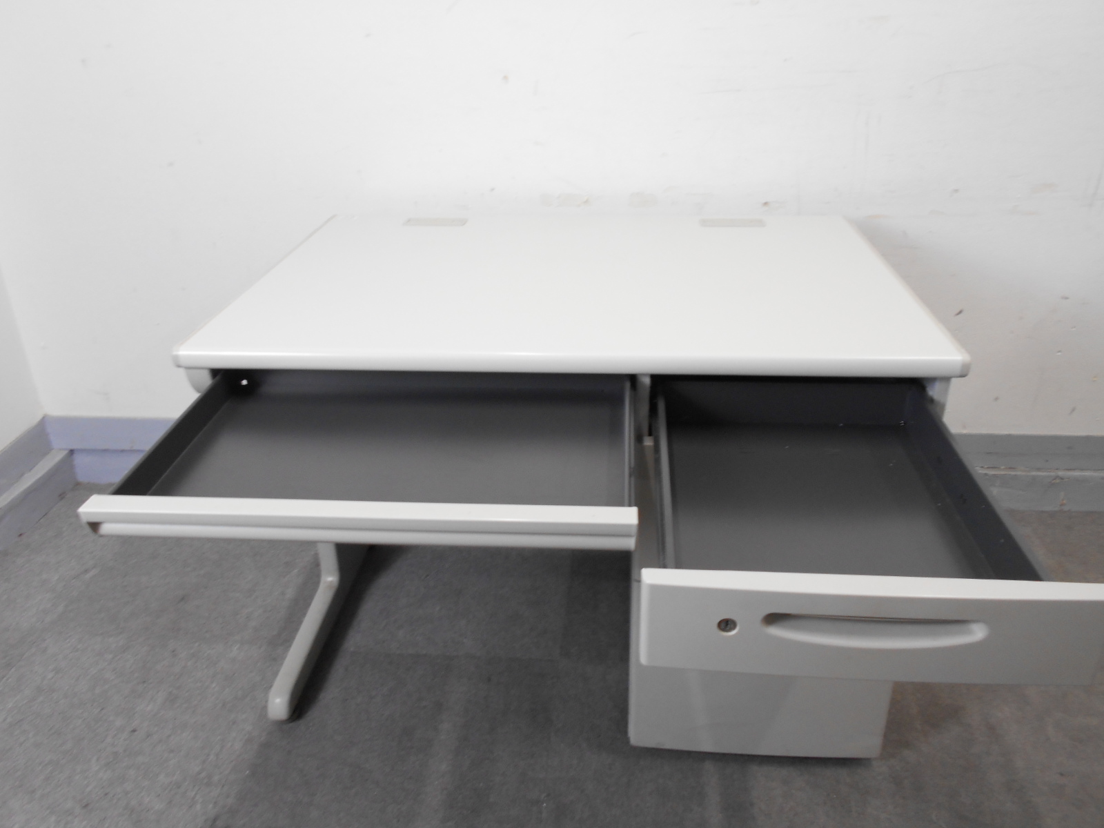 【コンパクトでスタンダード!使いやすい引き出し付きデスク!】■オカムラ(okamura)製 SD-Vシリーズ 平机+ワゴンセット(片袖机) 引き出し付き W1000㎜ ■ライトグレー ※ワゴンは在庫状況によって変動致します。