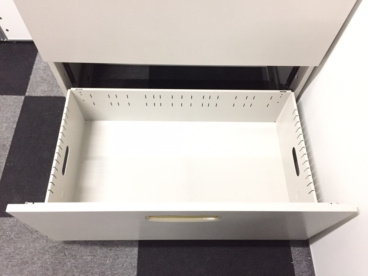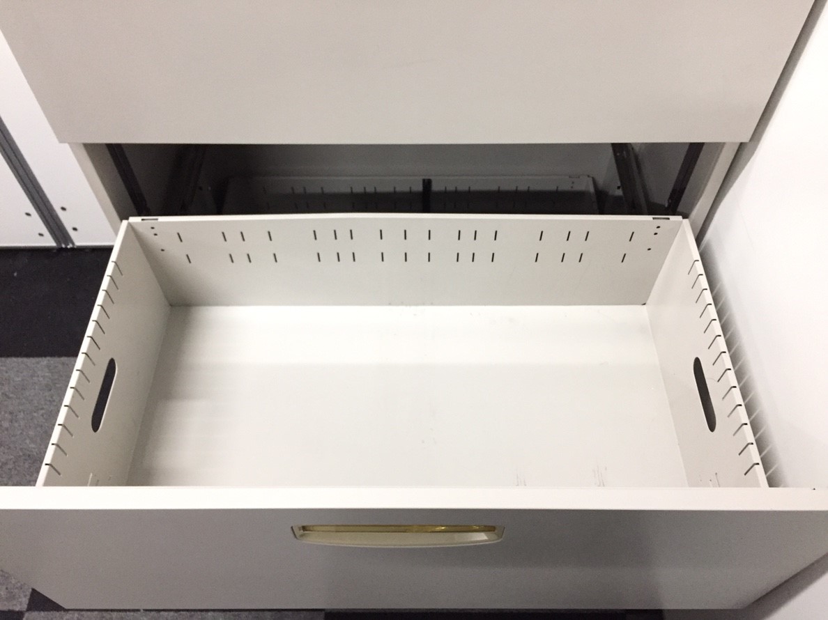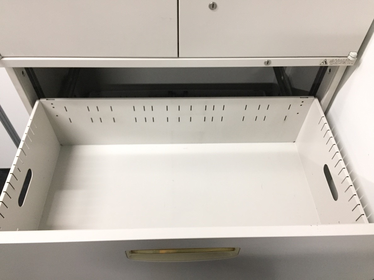 - 一部不具合ありそ引出の開閉不可、施錠不可、棚板無しといったの書庫の本来の効用を果たすための機能以外の一部が使用不可(例、扉、引出の開閉がしづらいなどがある。 )