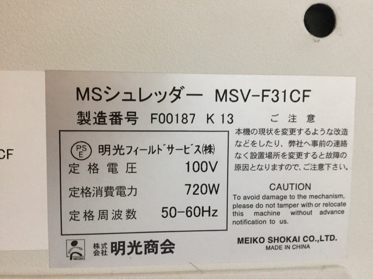 【中古】 MSシリーズ MSV-F31CF 明光商会 シュレッダー 241284