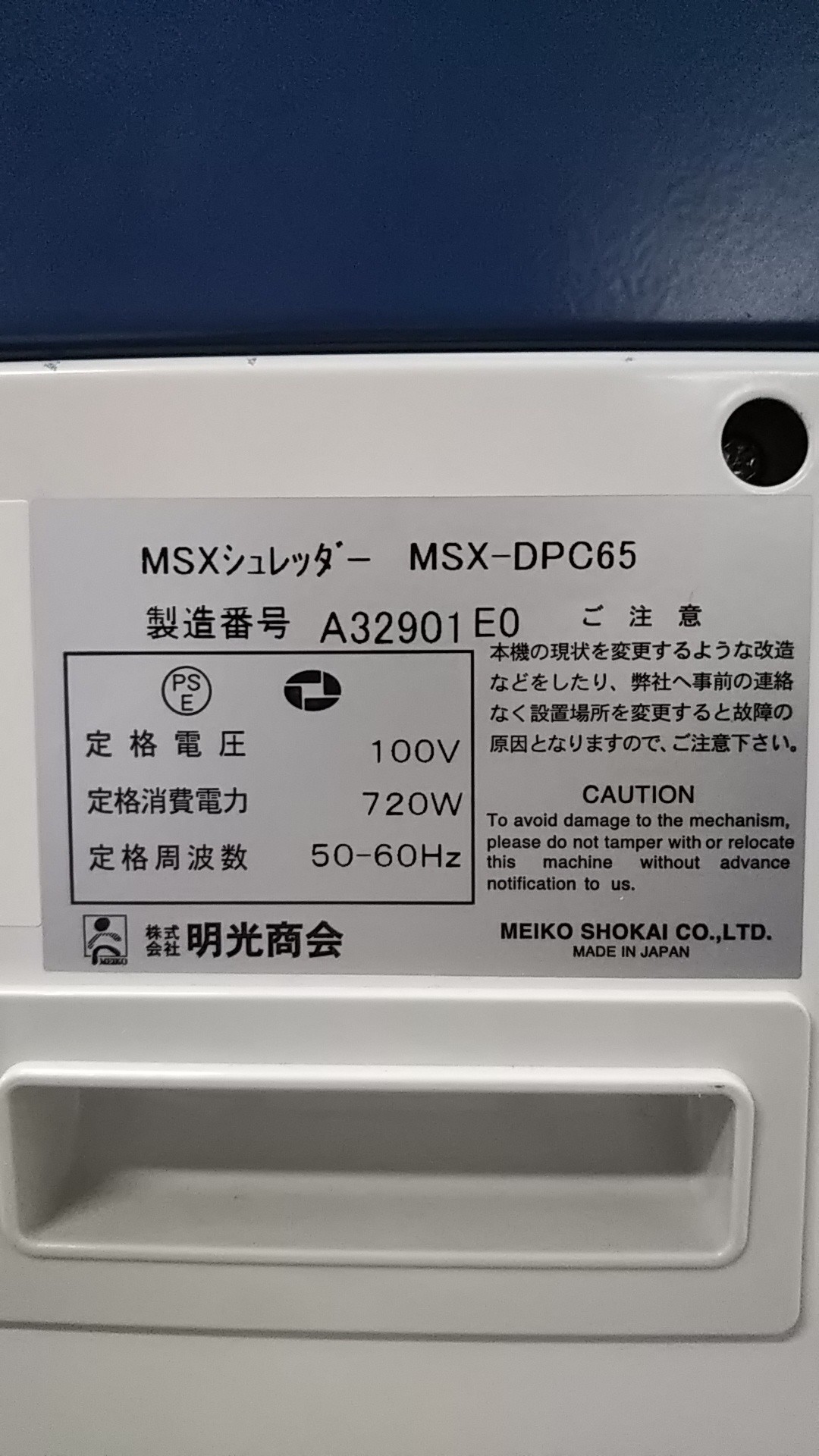 | 最大細断枚数 | 約65枚【A4PPC(64g/㎡)】新品時 |