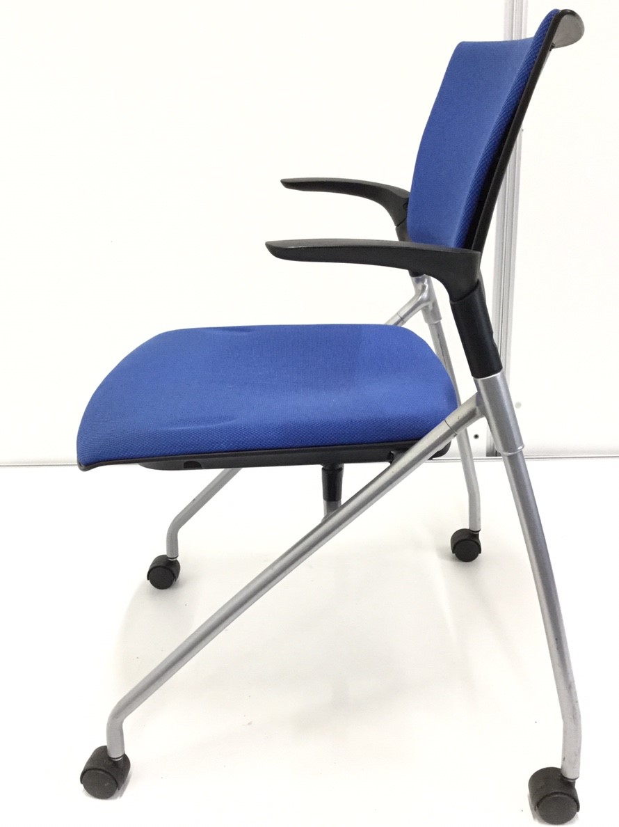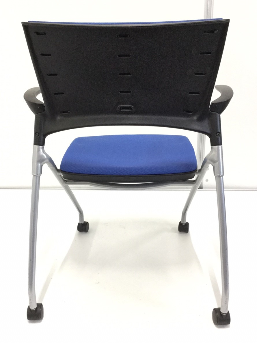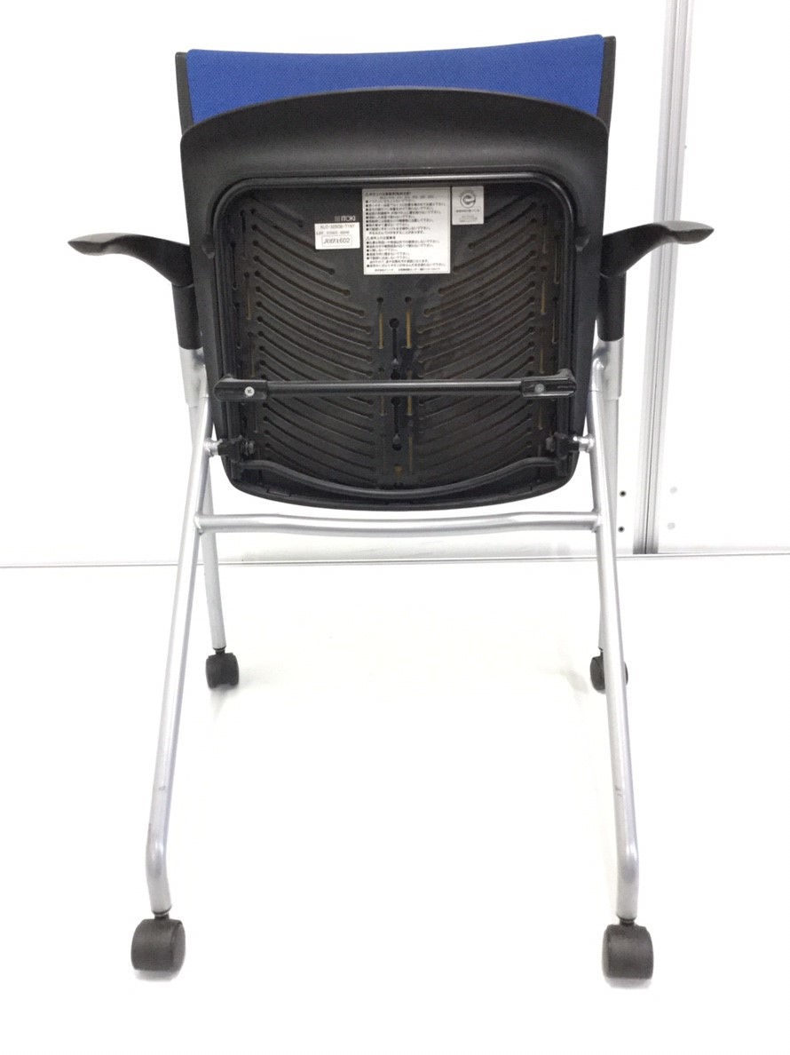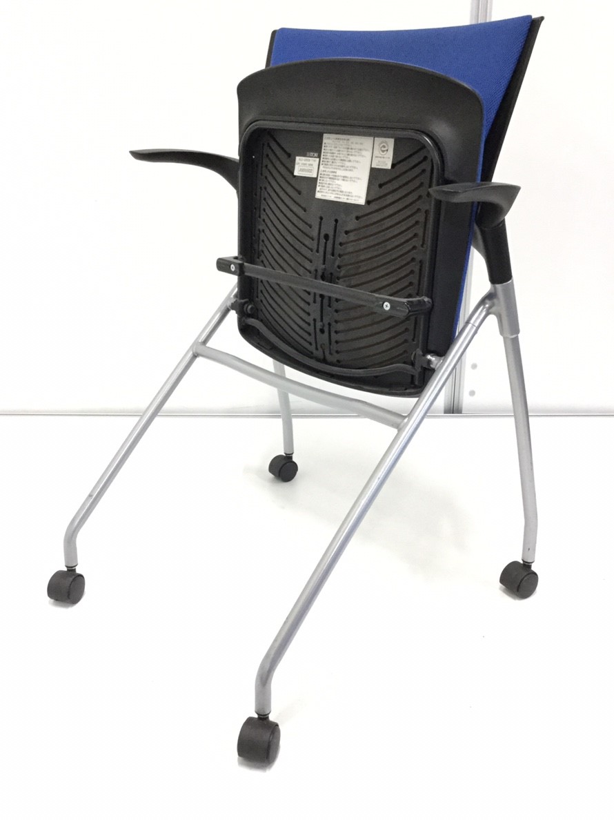 【定価6万円】【ソフトベンディングシェルが背を優しく受け止める!】■イトーキ(ITOKI) マノスチェア(MANOSS) 肘無し スタッキングチェア ミーティングチェア ■背パッド付 ■キャスター脚 ■ブルー