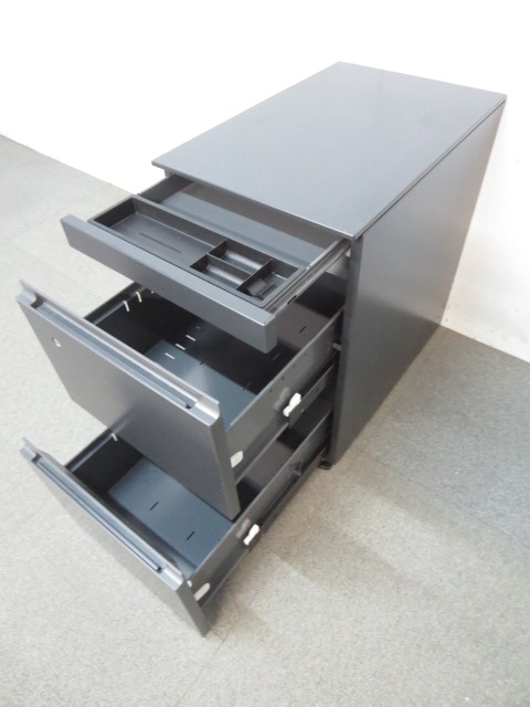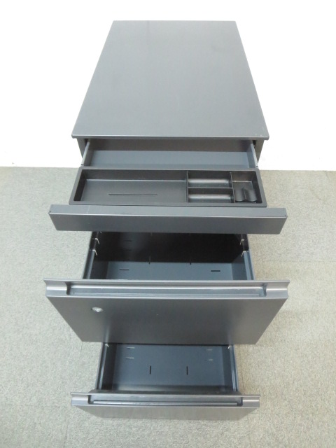 【スタイリッシュなブラックボディ!】■コクヨ製 3段ワゴン(フリーアドレス対応) ■【KOKUYO GXシリーズ】- 川崎店