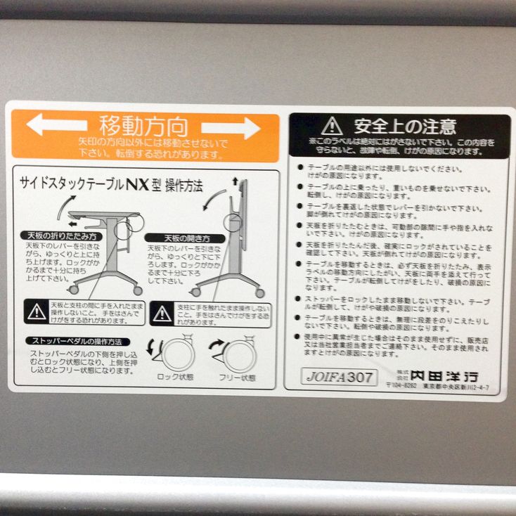 - 一部不具合あり天板歪み、アジャスター無し、キャスター使用不可ようなそのテーブルの本来の効用を果たすための機能以外の一部が使用不可な状態。(例、キャスターロッ ク機能使用不可、棚板無し等がある。)