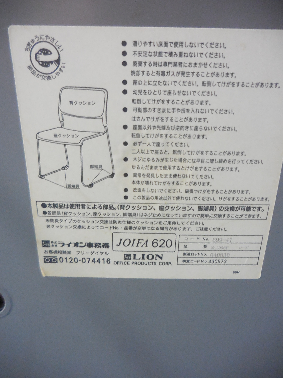 【中古】 No.1050シリーズ No.1058 ライオン スタッキングチェア 241746