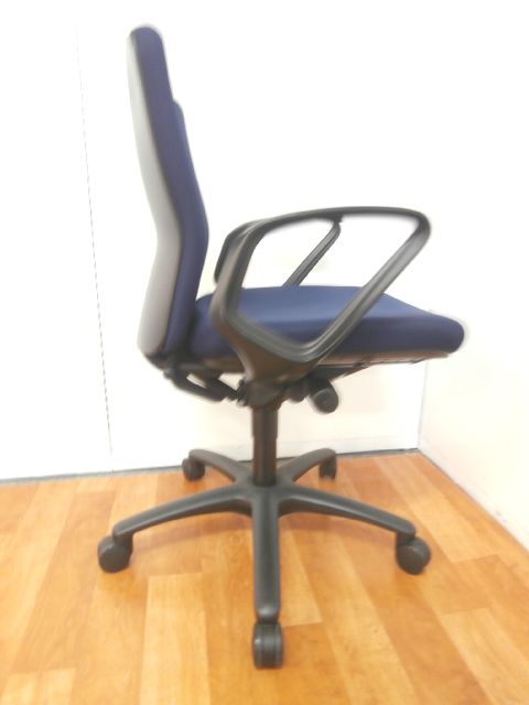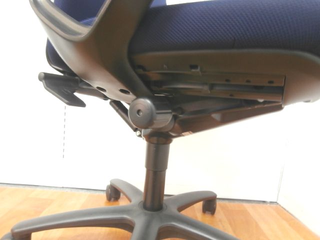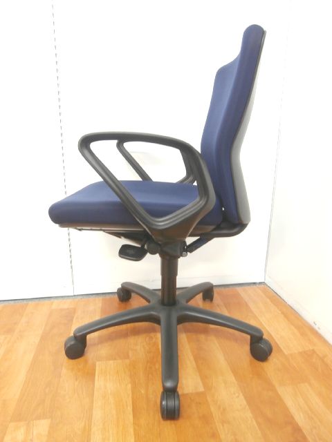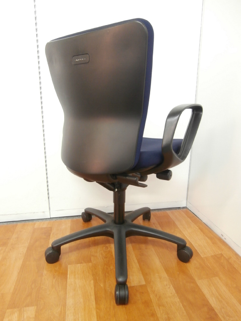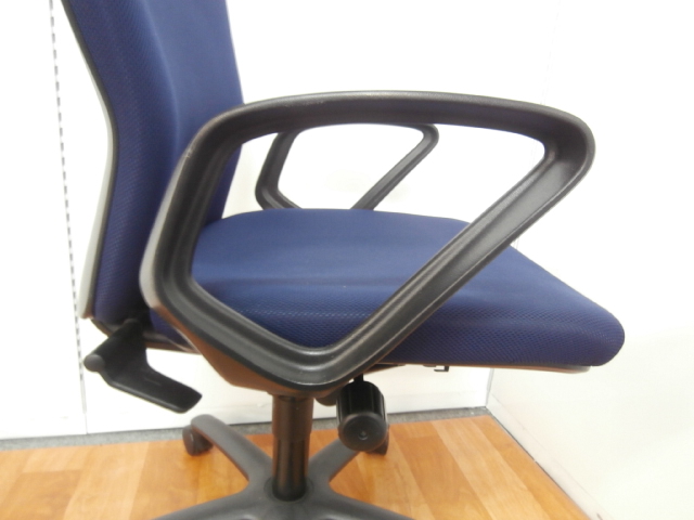 【人気シリーズOAチェアの肘付ブルーカラー】■オカムラ製 ■カロッツア ■肘付 ■事務椅子 ■ブルー ■青 ■国内メーカー ■上下昇降 ■リクライニング- 仙台店